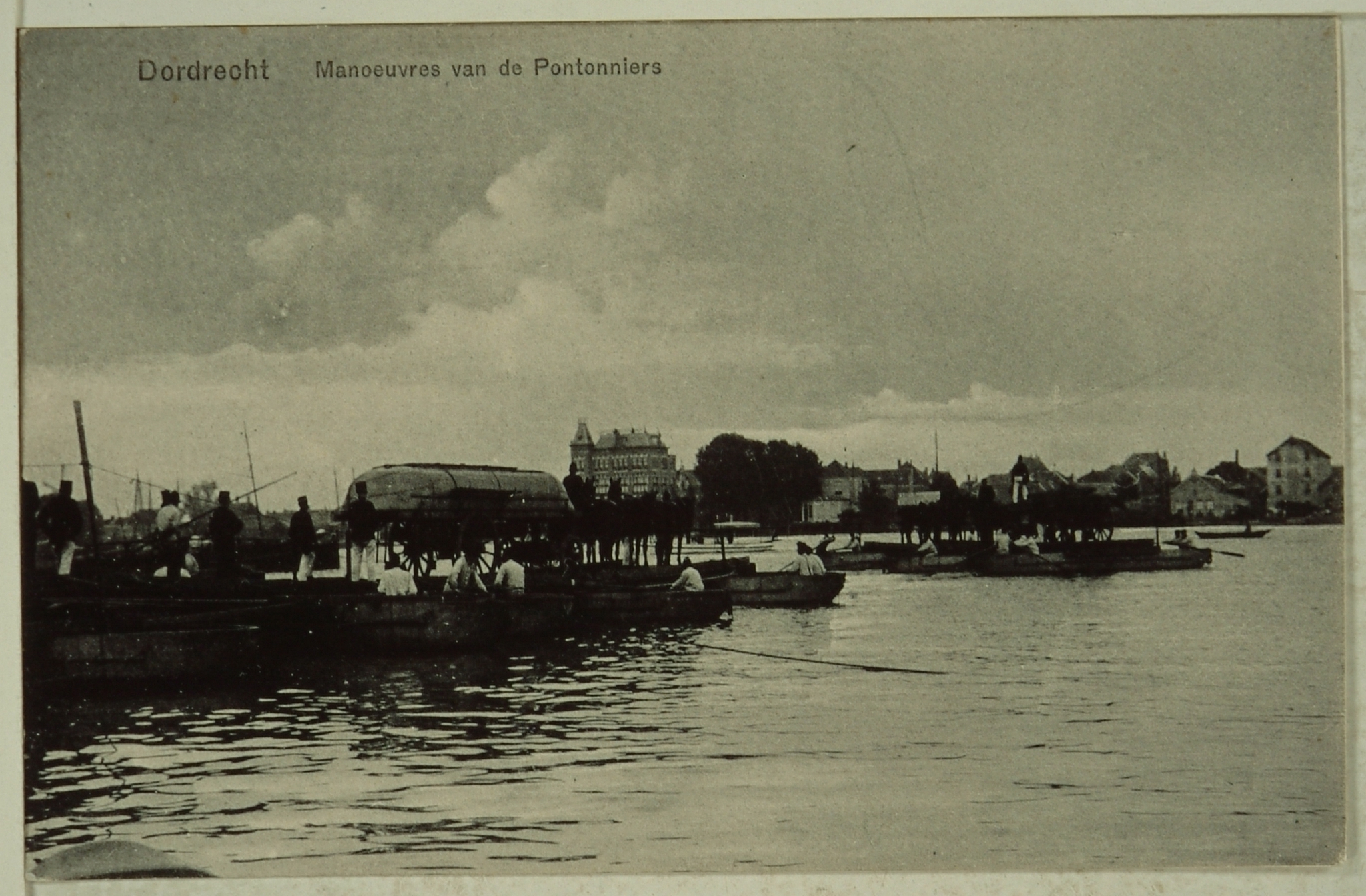 - Oefening Korps Pontonniers 1906-1907; bouwen pontonbrug