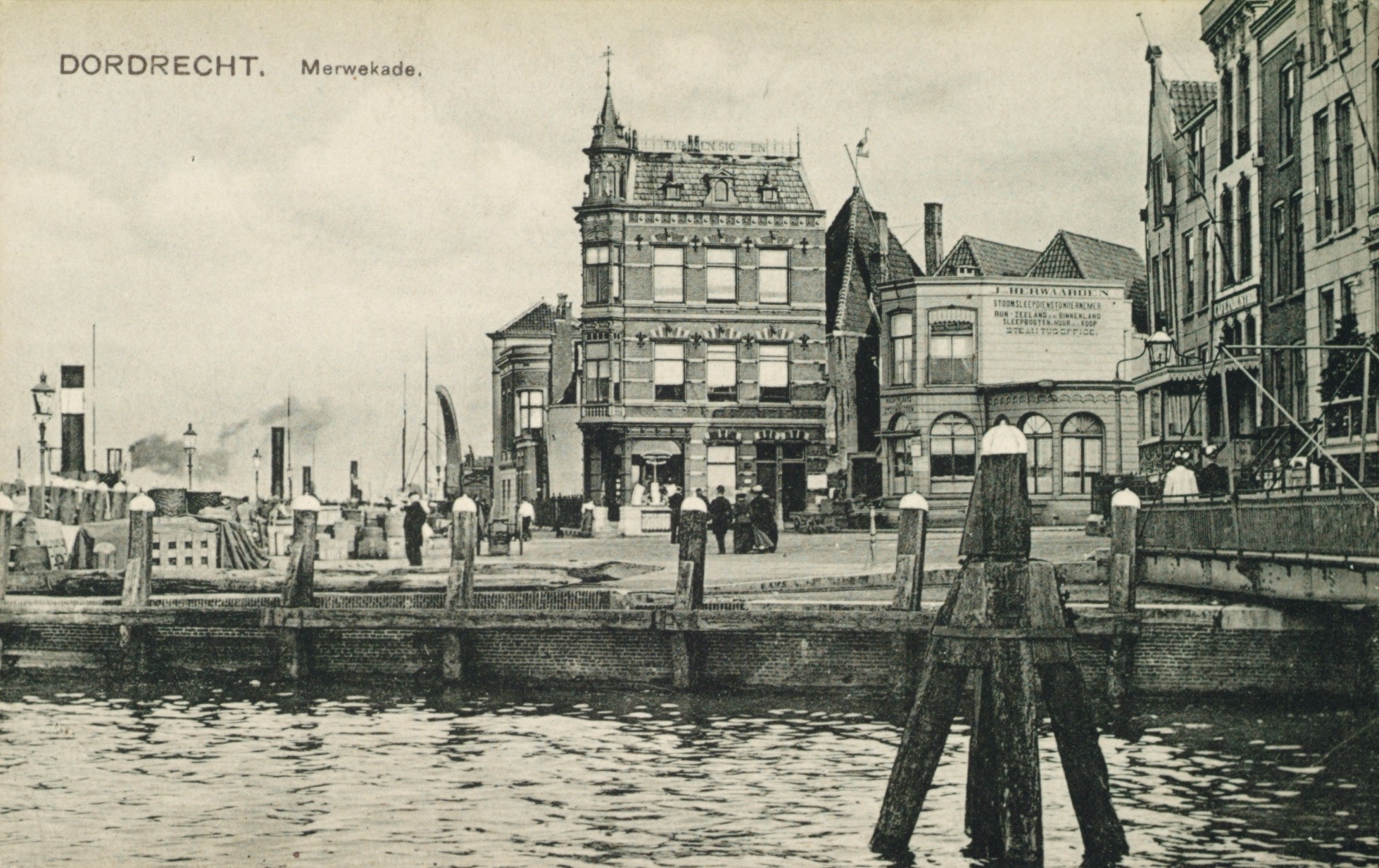 - Midden op de achtergrond: J. Herwaarden Stoomsleepdiensten