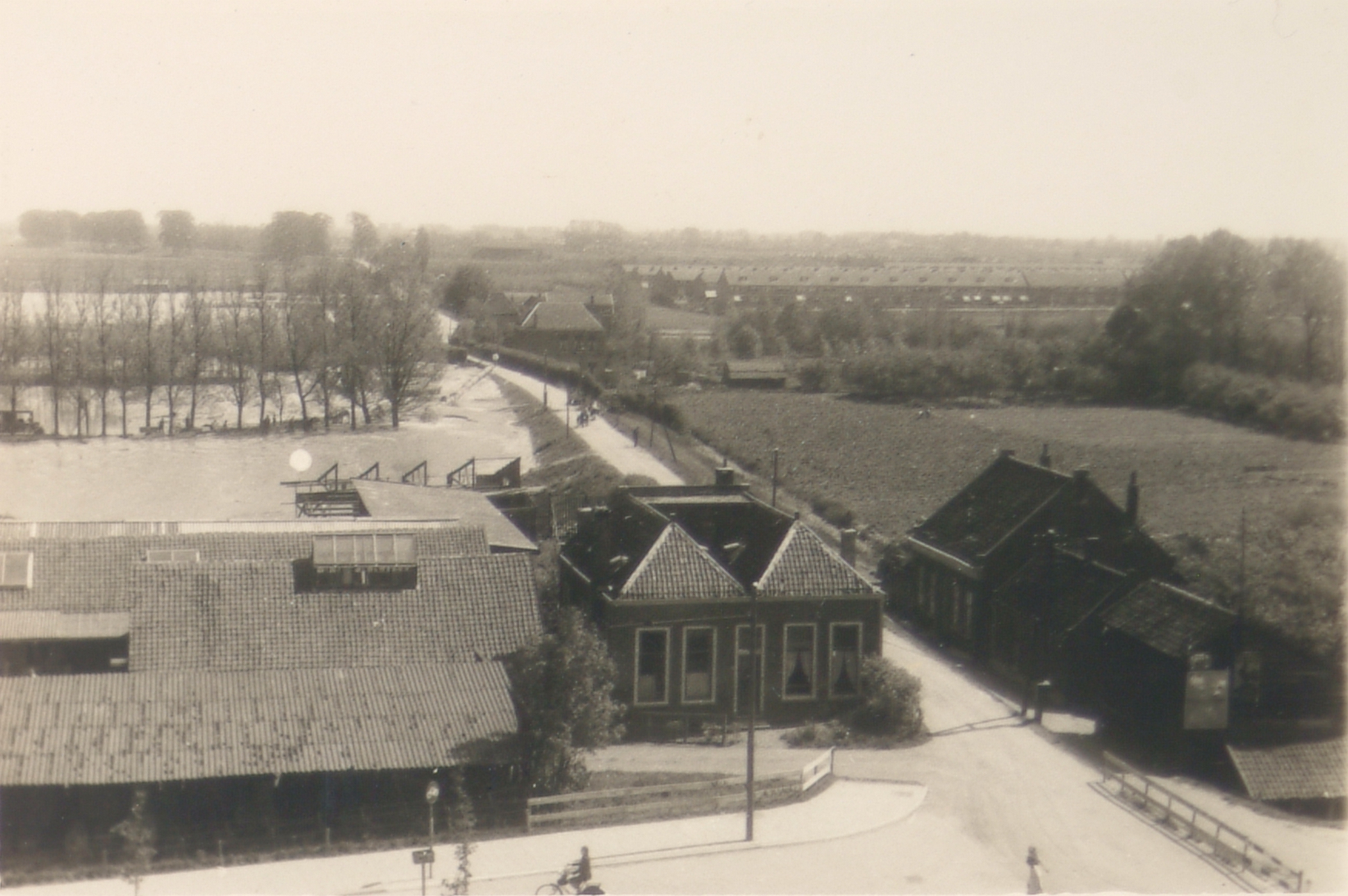- Balkengaten met hoogwater langs de Noordendijk. Oranjelaan op de voorgrond.