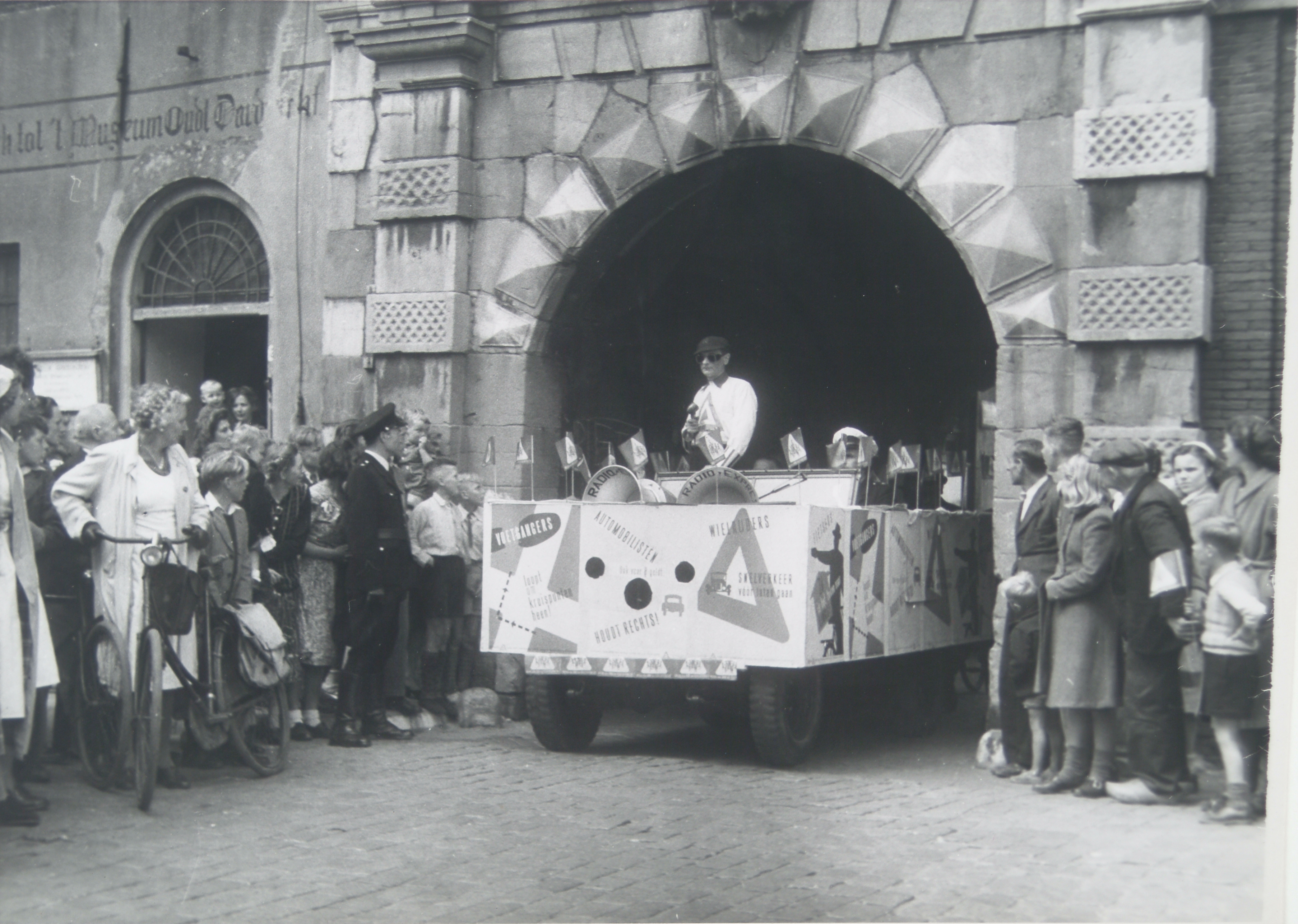 - Propagandawagen in het kader van de Veilig Verkeersweek onder de Groothoofdspoort
