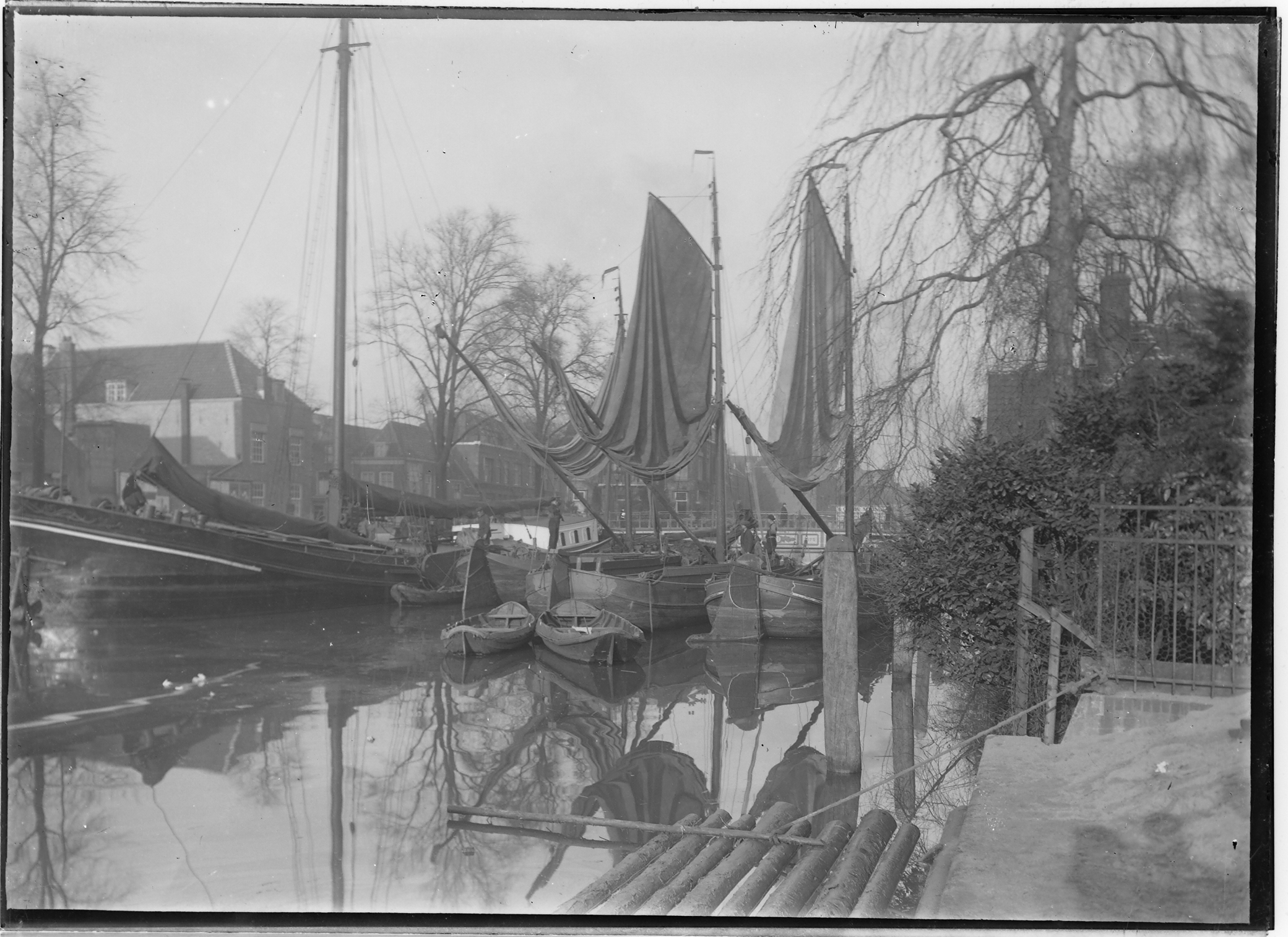 - Spuihaven met zandschepen nabij de Vriesbrug panden aan de Vest