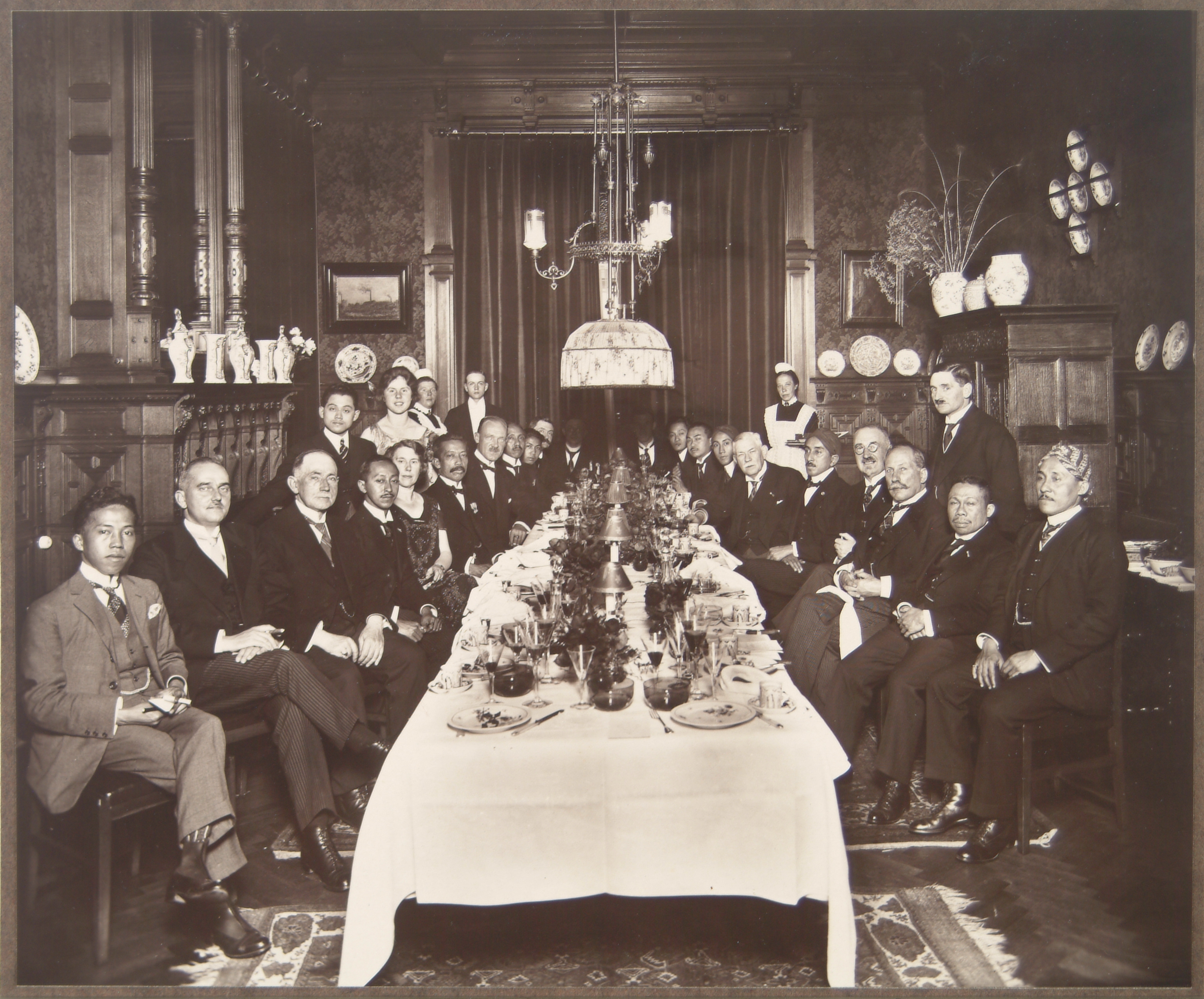 - Indische vorsten uit Solo, Djokjakarta en Boeleongan ten huize van de directeur Redelé van de Victoriafabriek.aan de Singel 169; rechts dr. Th Stoop