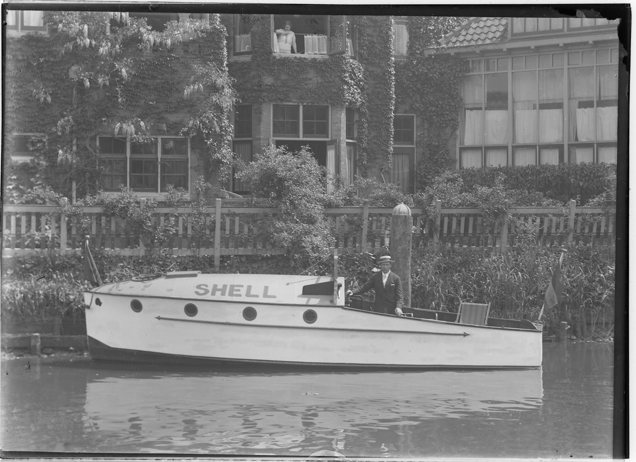 - Motorboot in de Spuihaven huizen aan de Vrieseplein