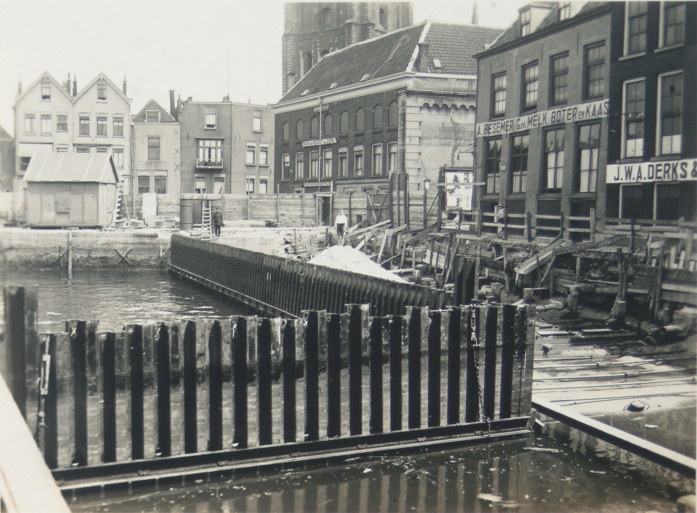 Aanleg nieuwe beschoeiing van de Bomkade