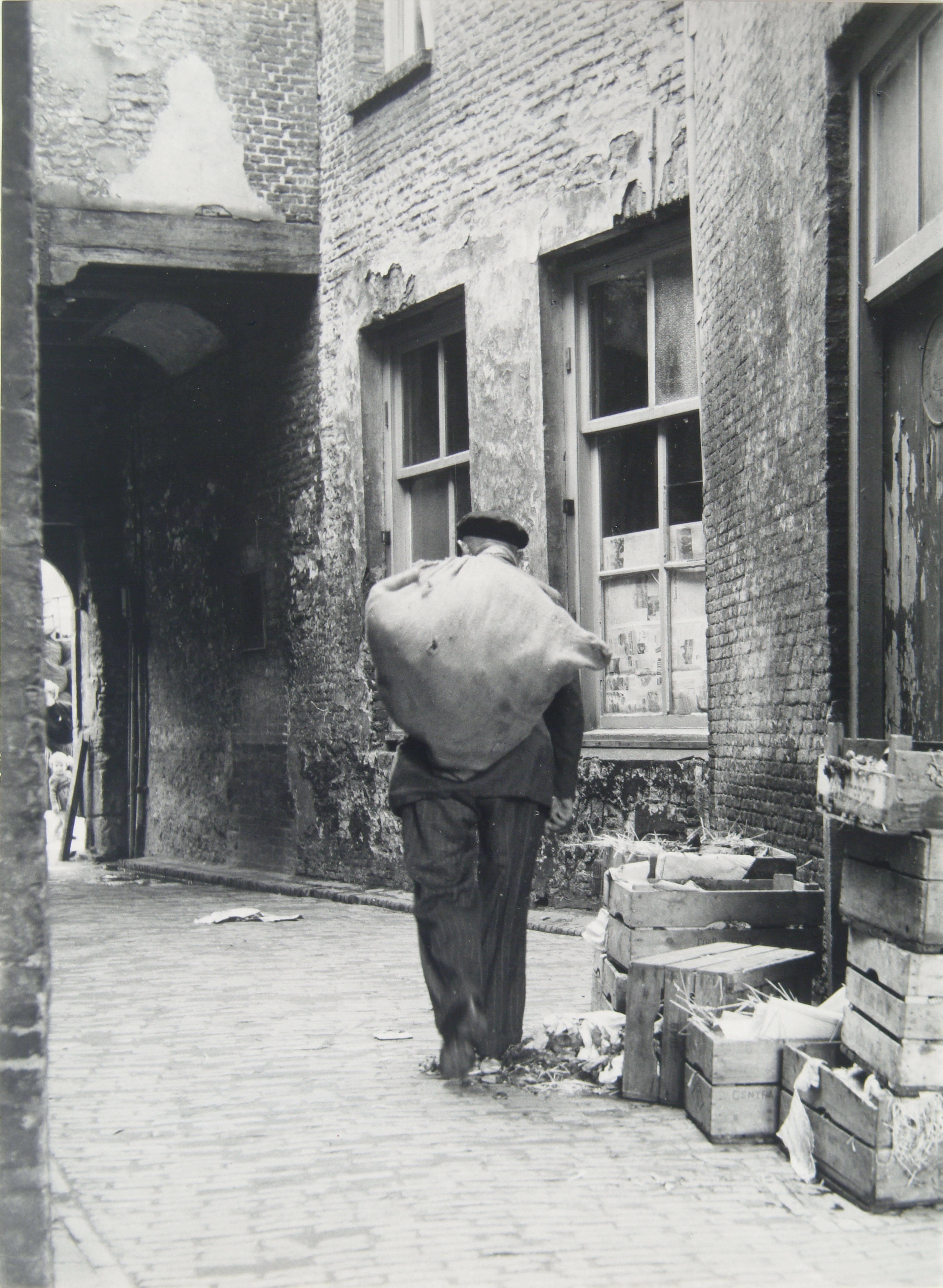 - Zakkendragende man in de Hofpoort naar de Voorstraat