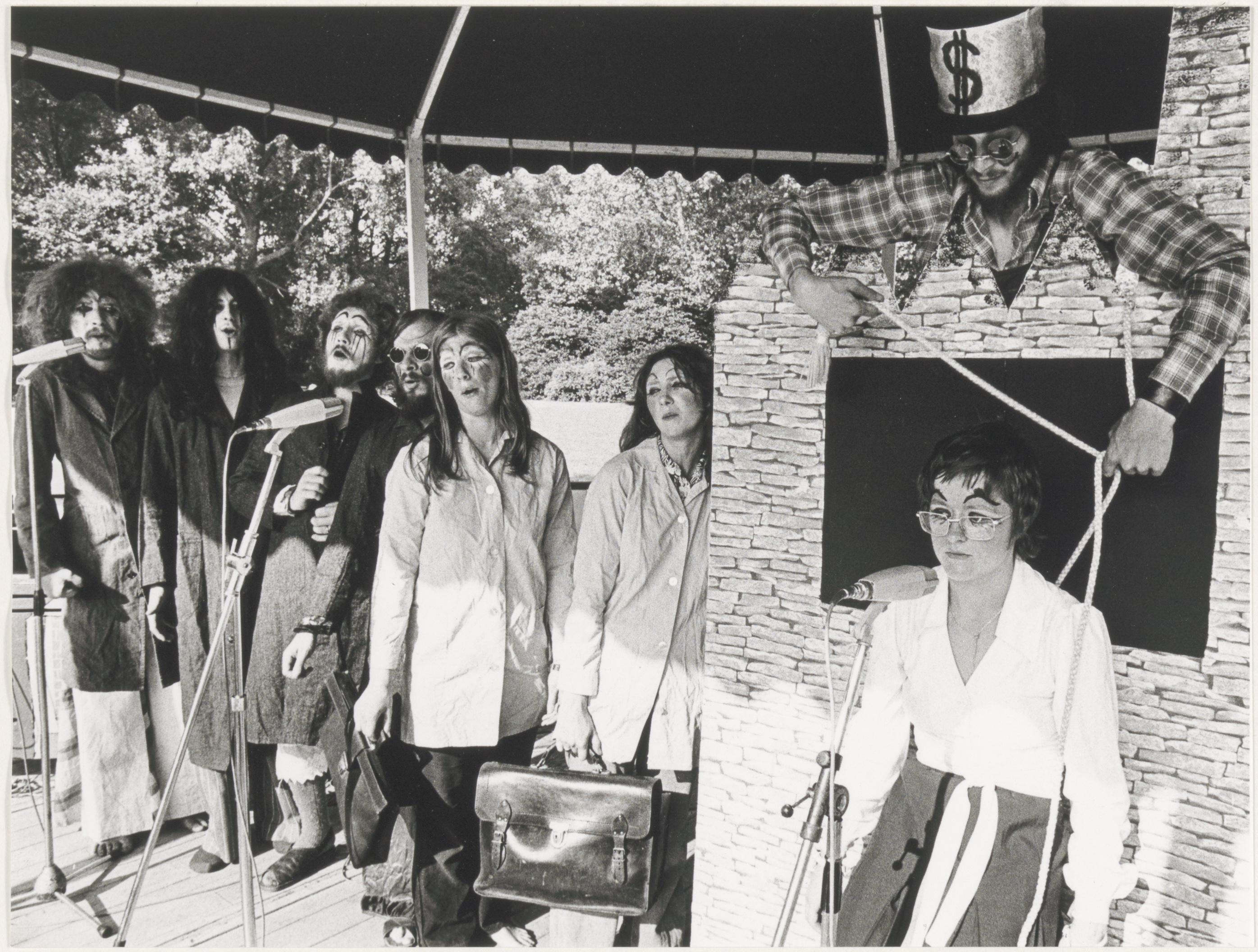 - Een optreden van een muziekgroep in een tent in het Wantijpark tijdens een Stemvork-evenement.