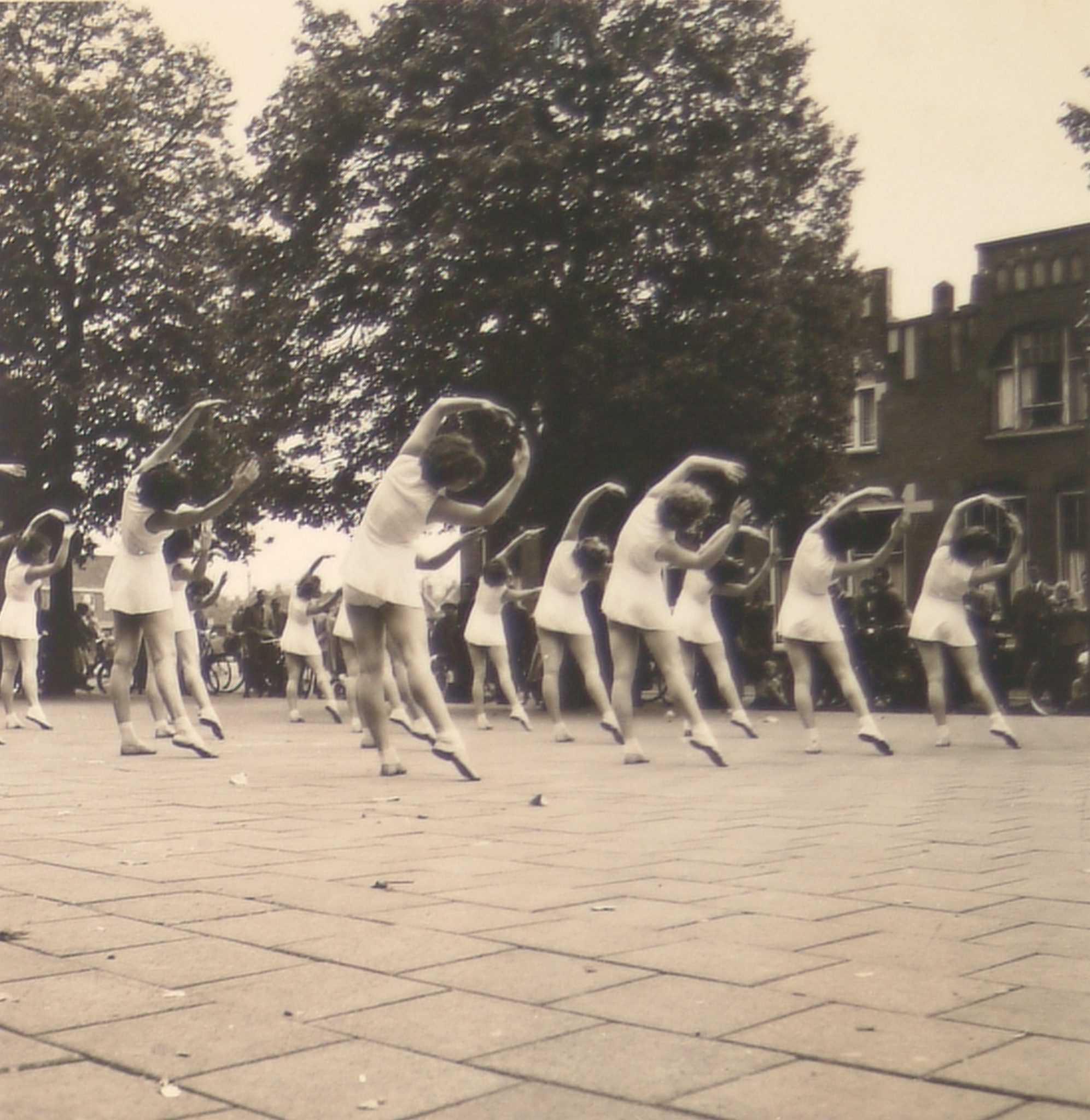 Demonstratie van de Finse Olympische gymnastische damesploeg op het Oranje Vrijstaatplein