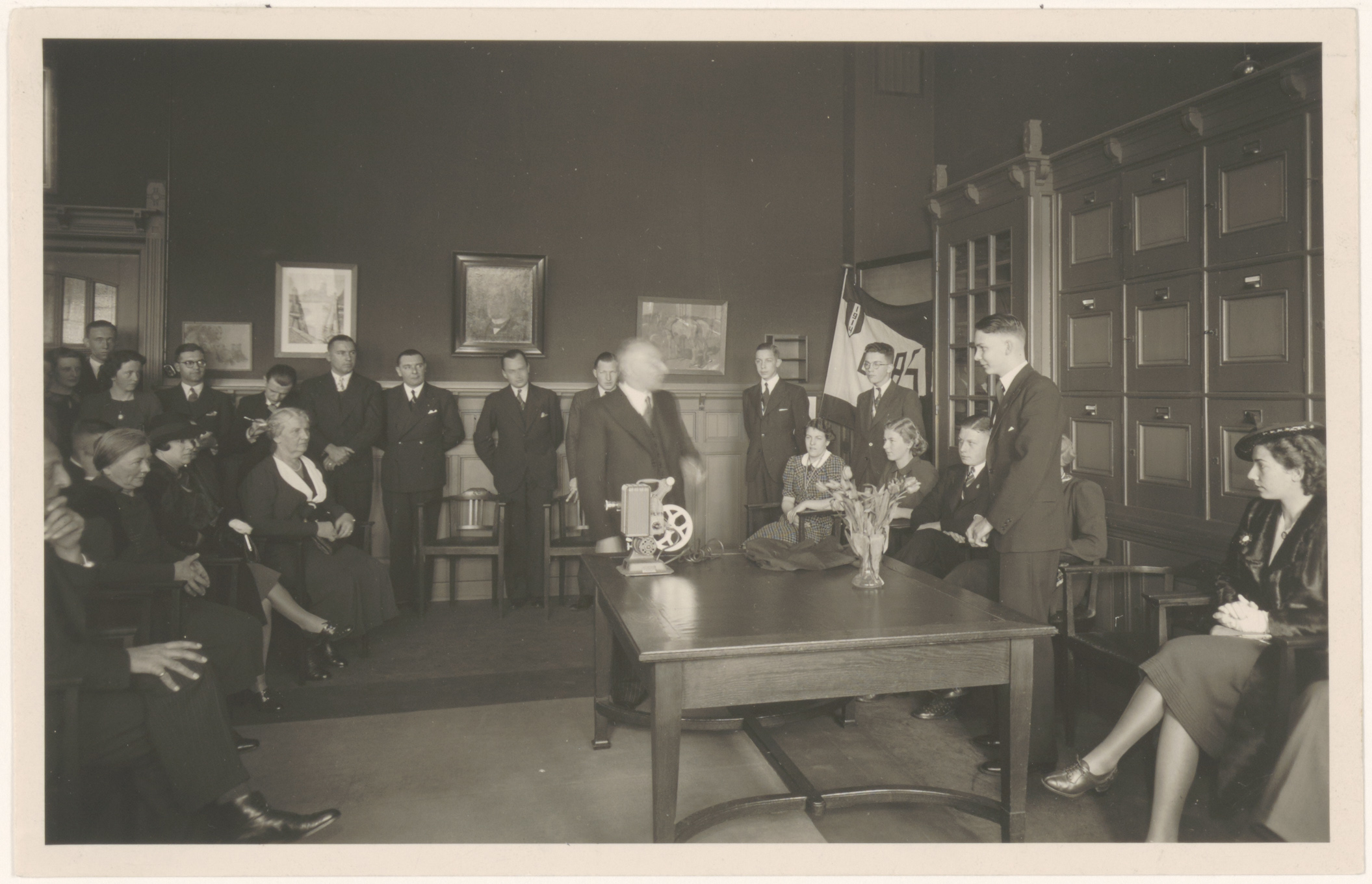 - Overhandiging in de HBS aan het Oranjepark van een cadeau aan dhr. Bruno van Gelder door, mogelijk, een vertegenwoordiger van de leerlingenraad; gegevens, behalve het jaar 1946, onbekend; de naam van Gelder is niet te vinden in het lerarenbestand.