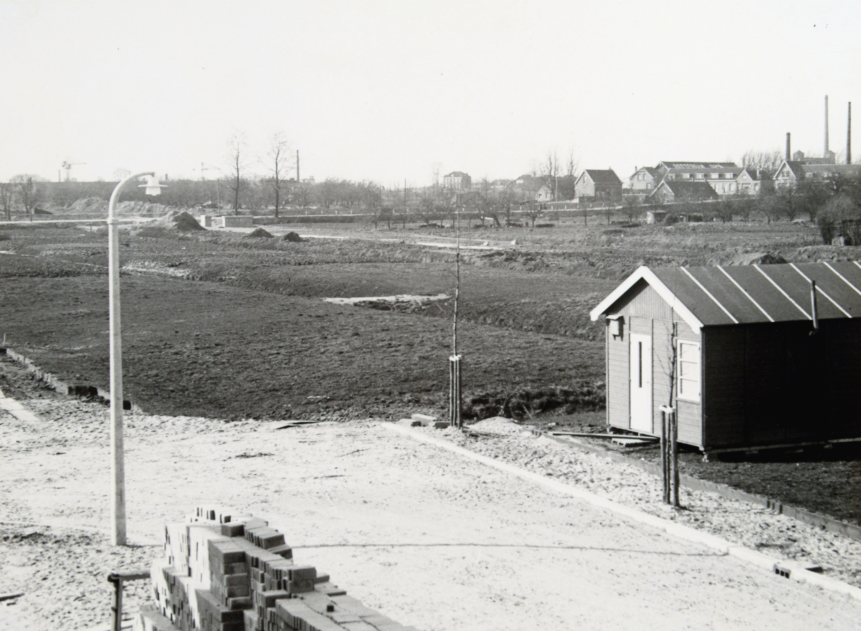 - Gezicht van het punt Brederodestraat/Van Baerlestraat in de richting van de Weeskinderendijk. De Hugo de Grootlaan moest nog worden aangelegd.