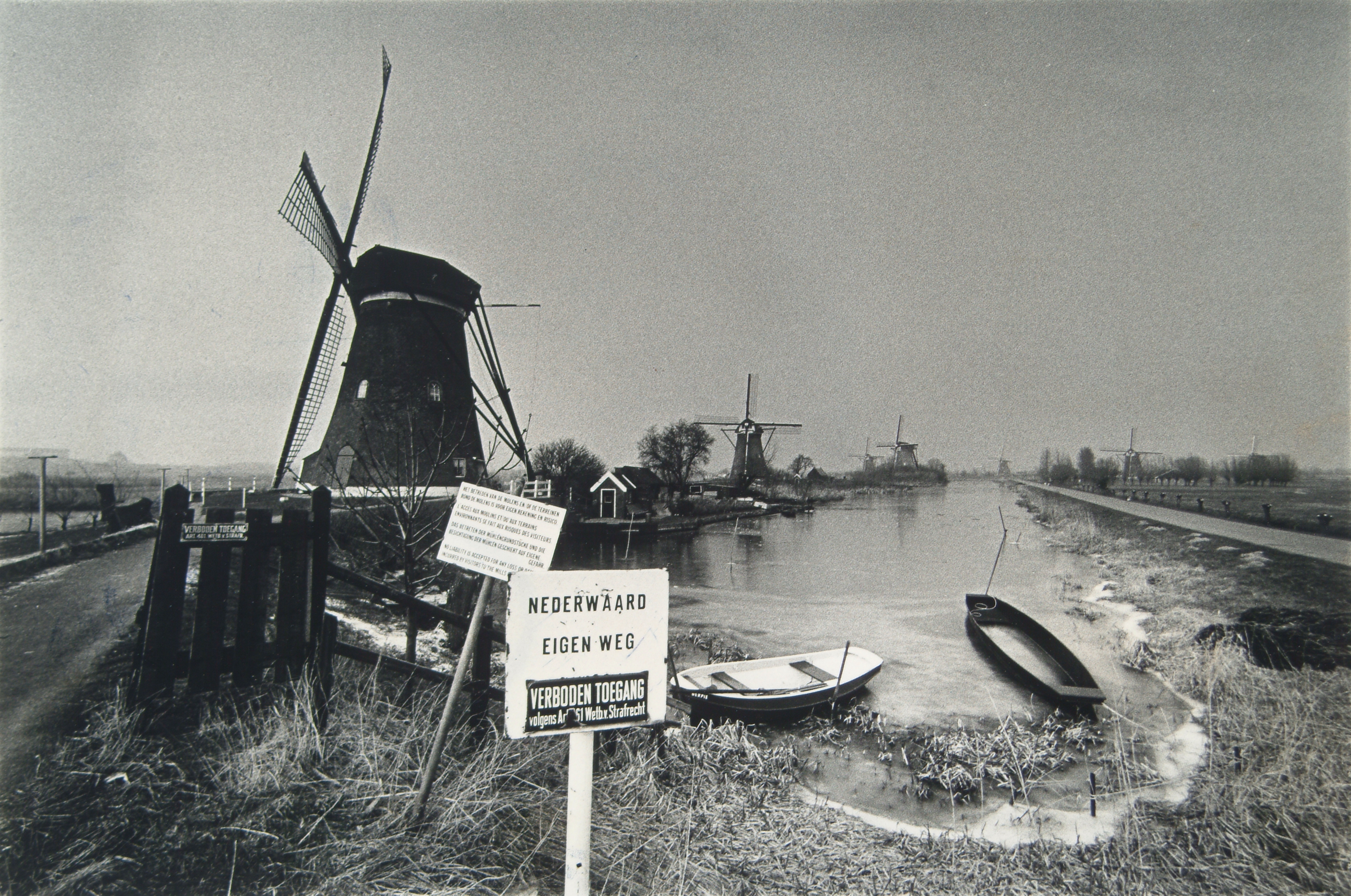 Bevroren wetering met molens in de Nederwaard bij Kinderdijk