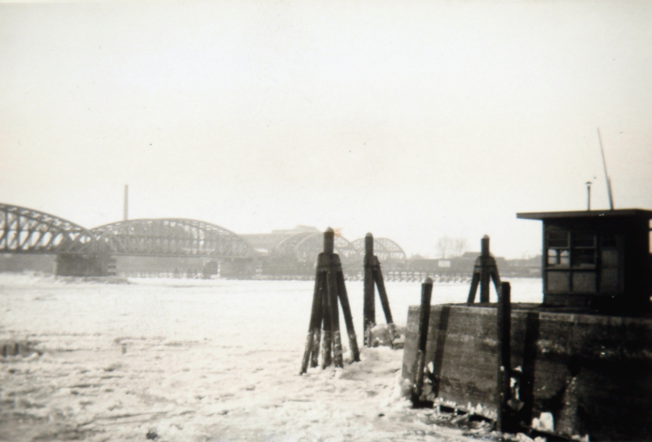 - dukdalven / meerpalen ijsgang riviergezichten spoorbruggen winter