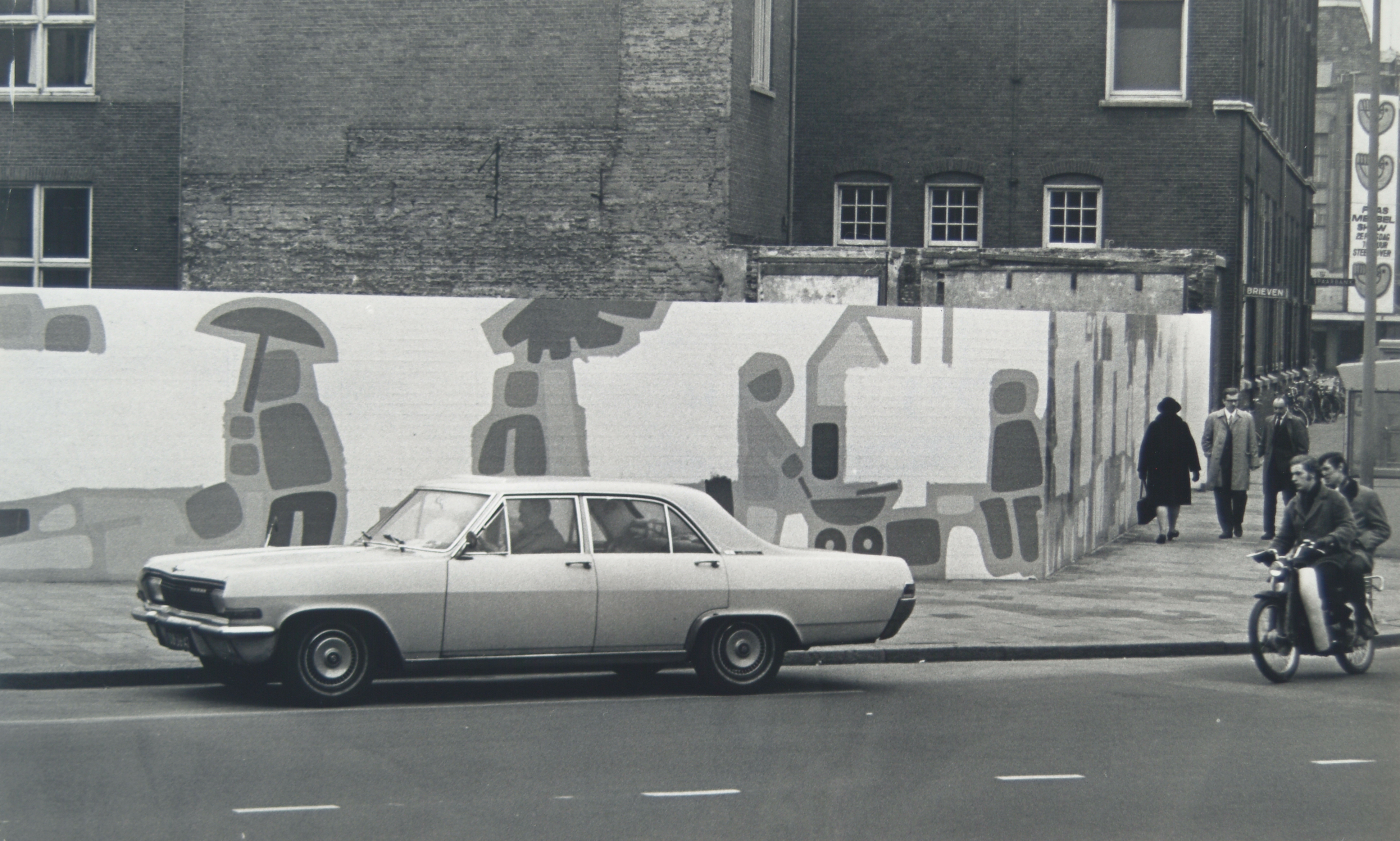 - auto's bromfietsen / brommers muurschilderingen postkantoren voetgangers