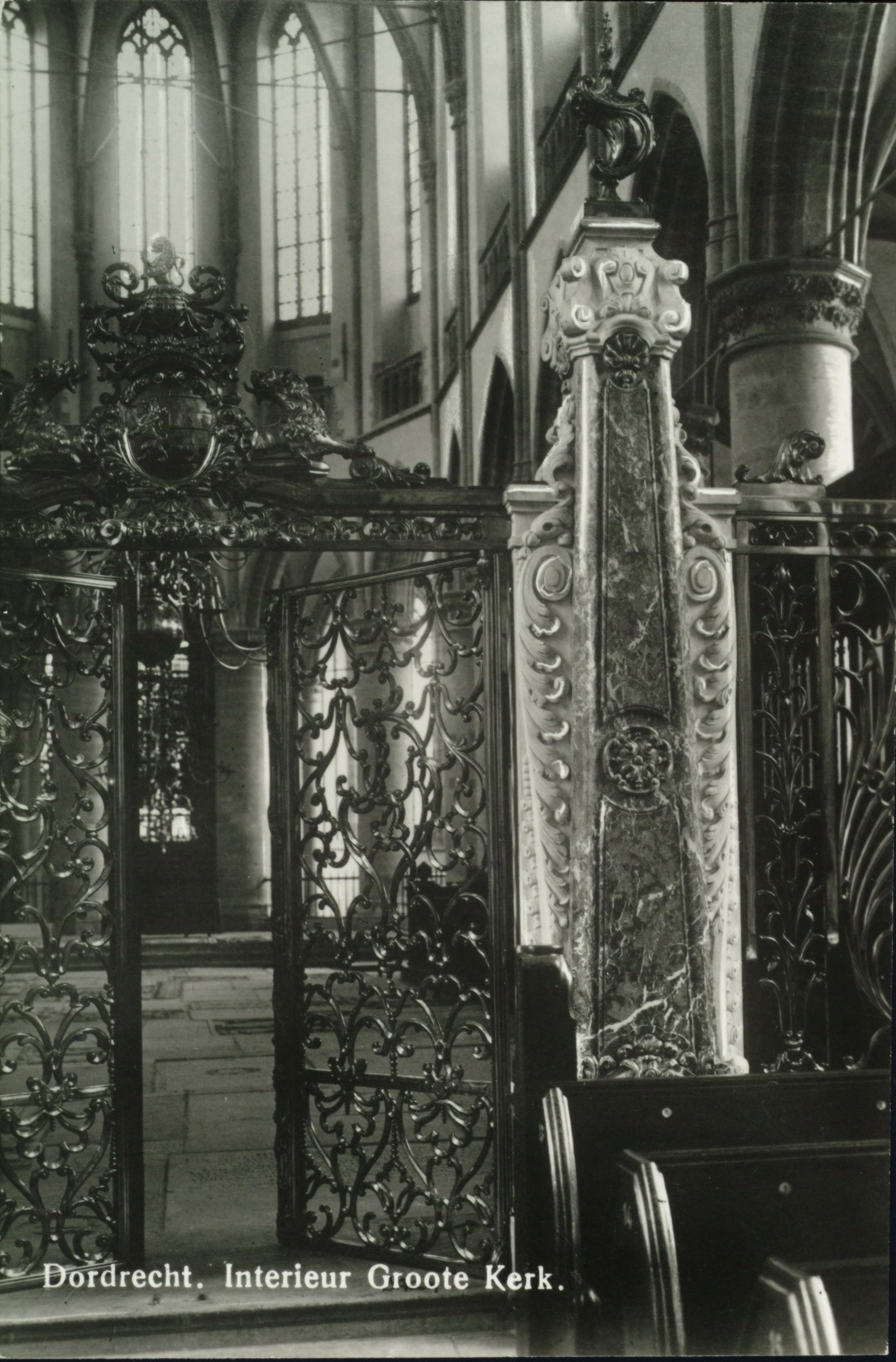 Lange Geldersekade, interieur van de Grote Kerk; detail van het koorhek.
