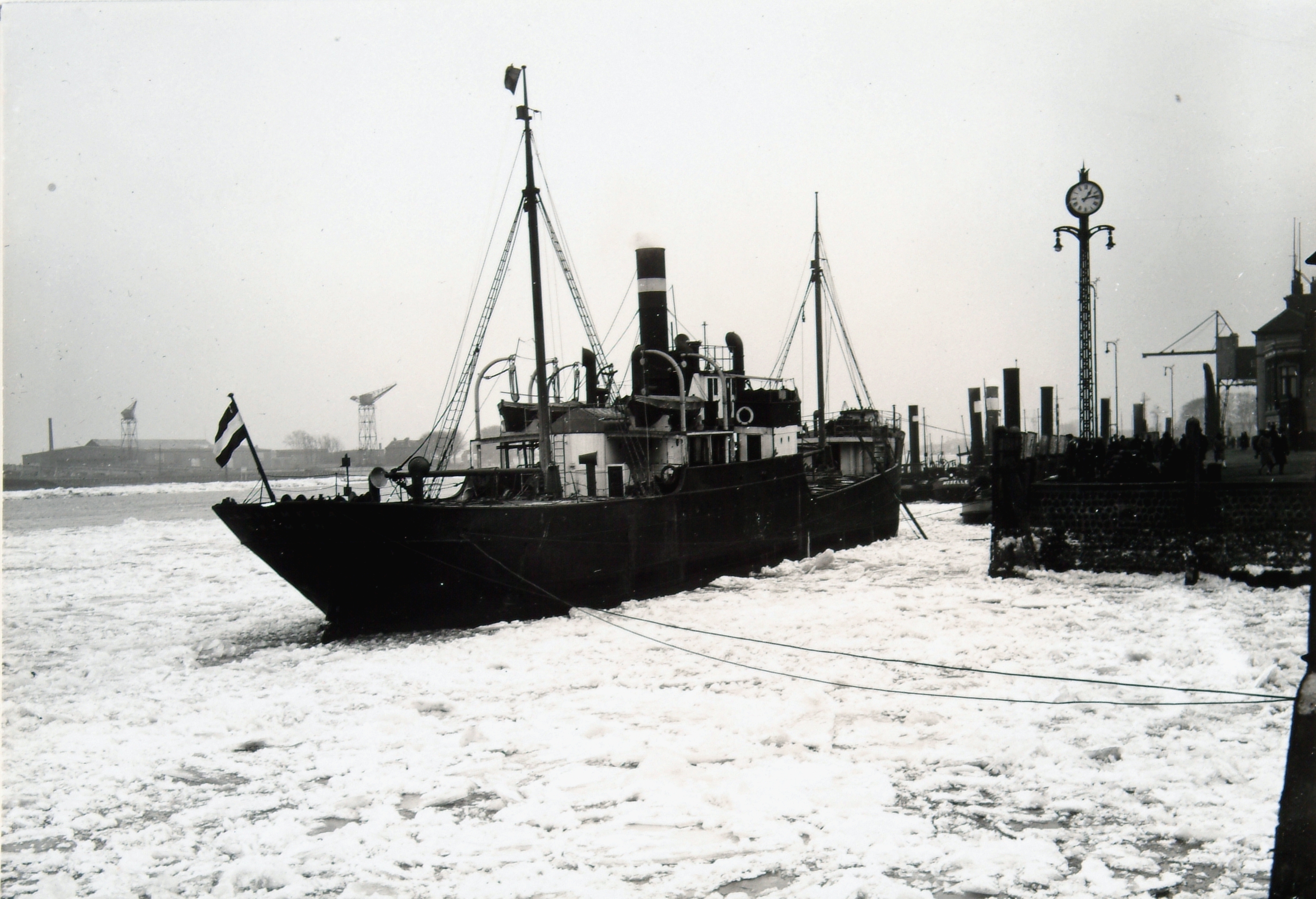 Stoomschip "Andromeda" uit Bremen op de Merwede bij het Groothoofd en de ingang van de …