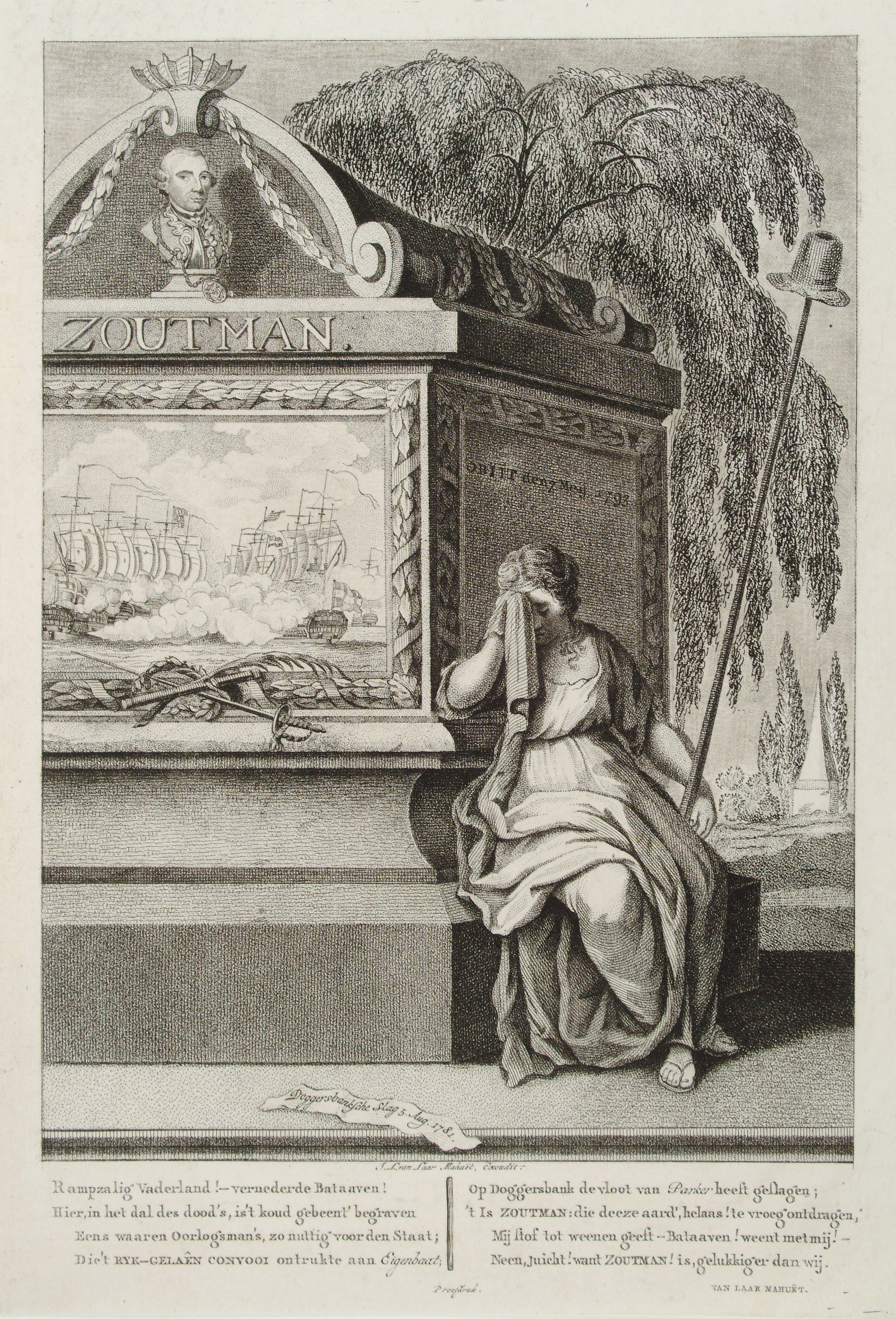 32,7 x 22,8 cm (blad) Muller 6323.p Zinneprent op zijn overlijden