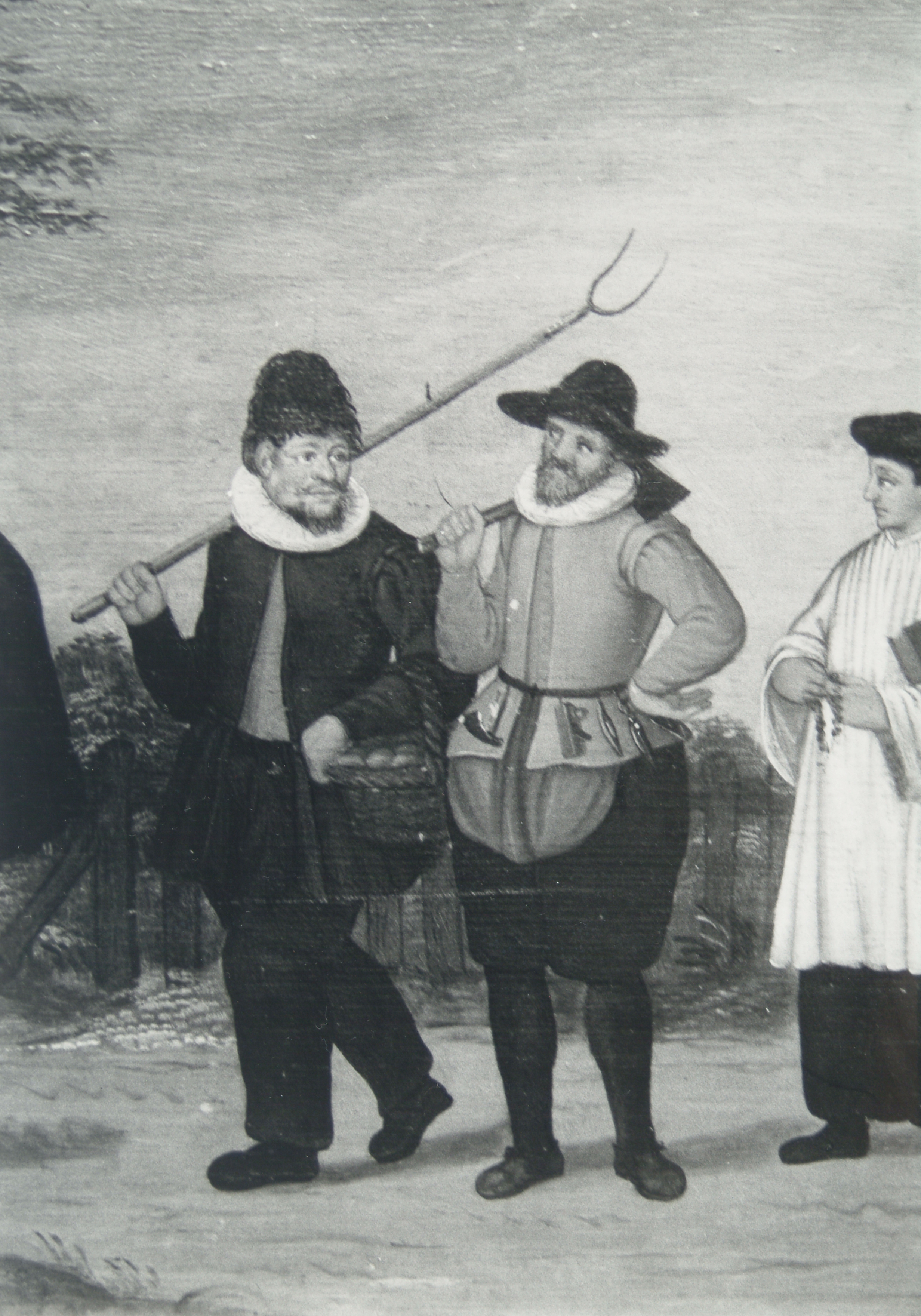 - Detailopname van het schilderij van de optocht van de rederijkerskamer De Fonteynisten, ca. 1560