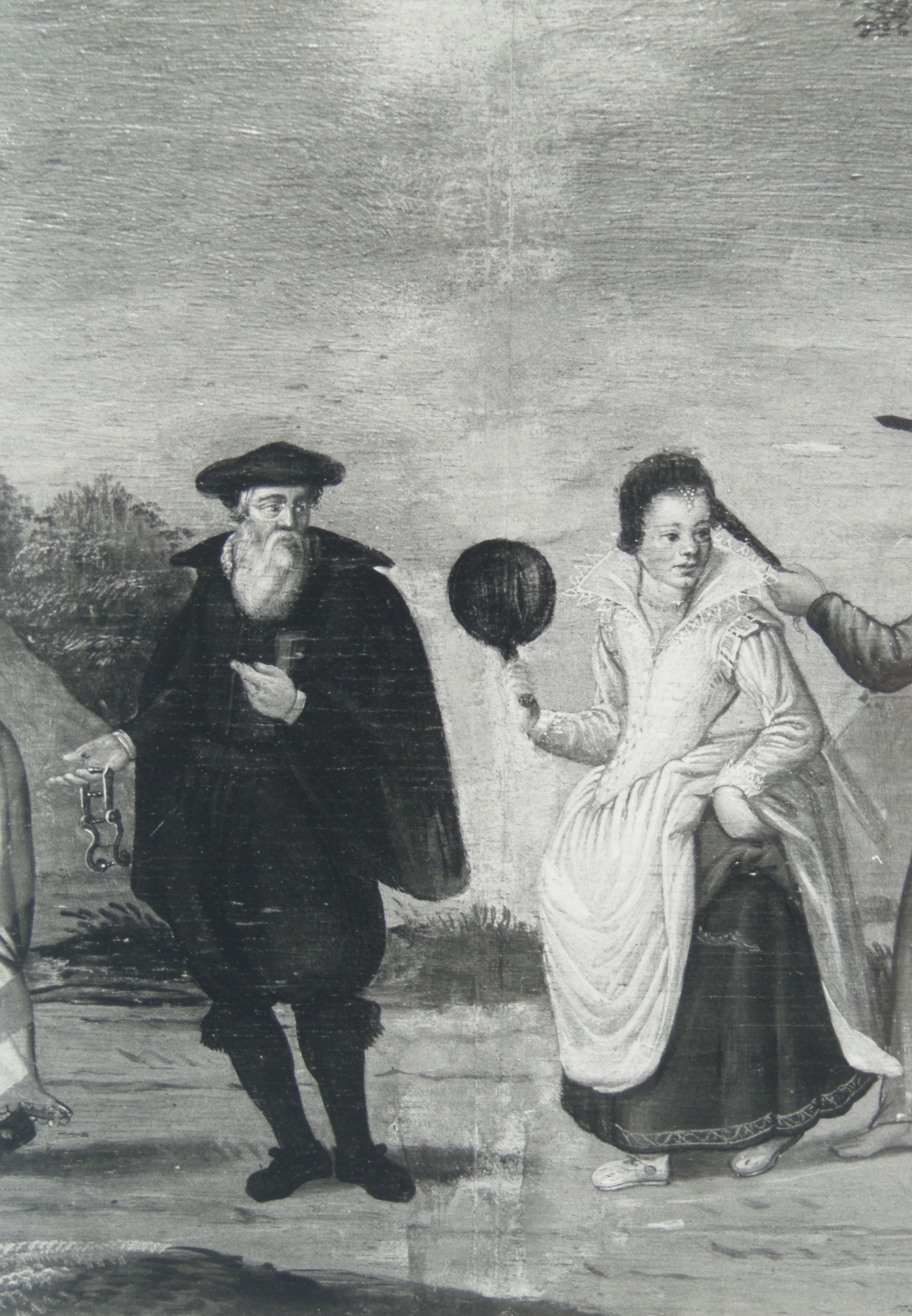 - Detailopname van het schilderij van de optocht van de rederijkerskamer De Fonteynisten, ca. 1560