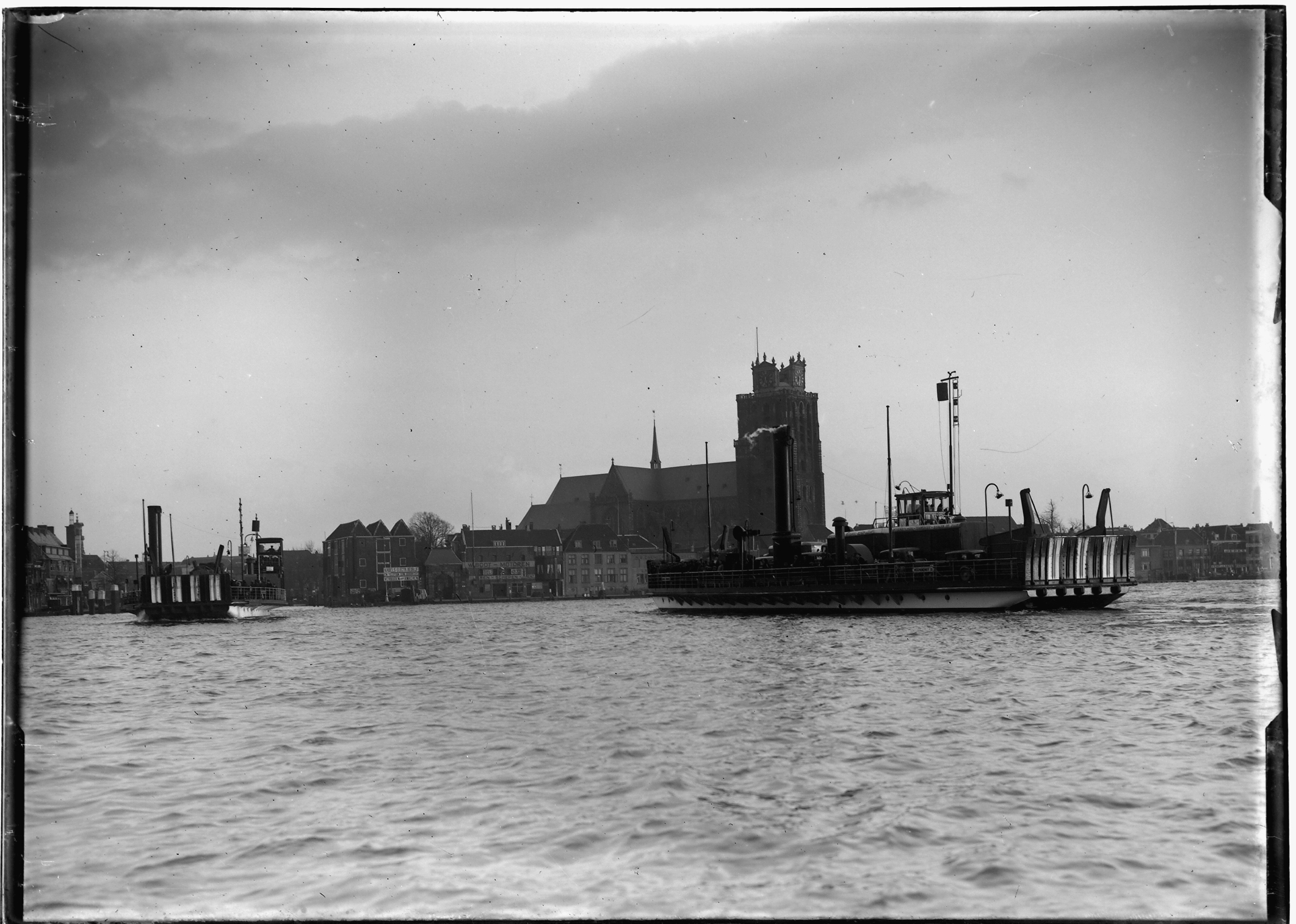 Veerboten varen van en naar Zwijndrecht op de Oude Maas voor Dordrecht ter hoogte van …
