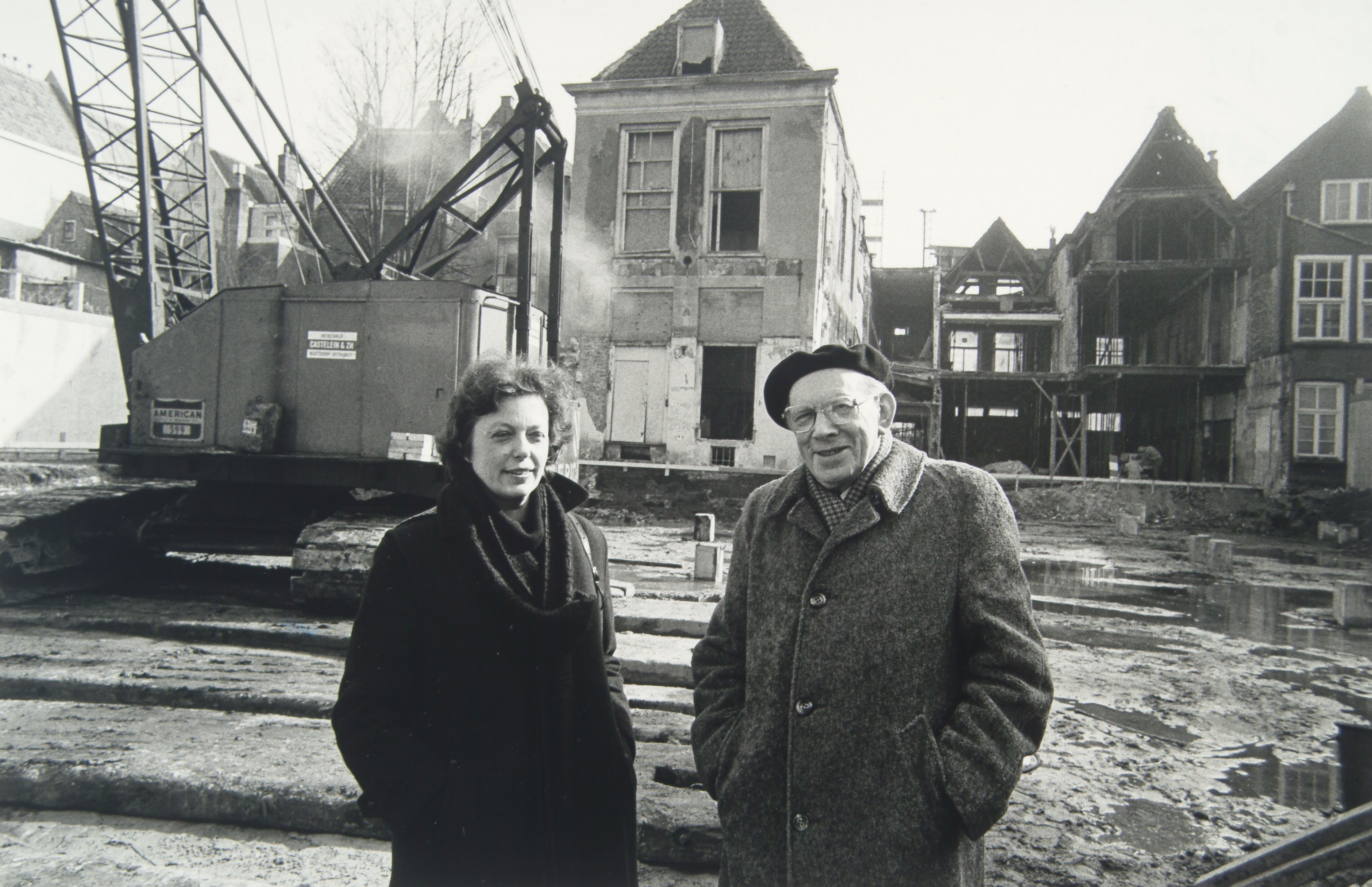 - Directeur T. Kuitert en voorzitter P.J. Neef van de stichting openbare bibliotheek voor de achterzijde van de nieuwbouw van de bibliotheek aan de Groenmarkt