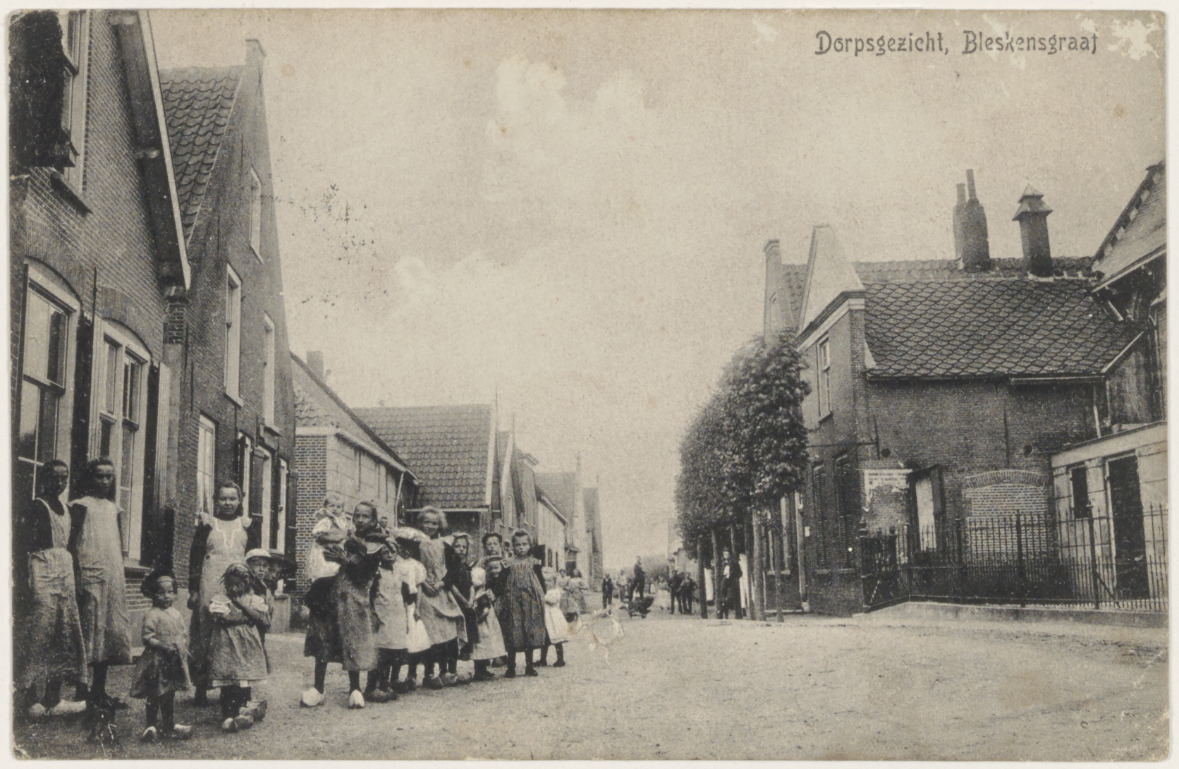 Kerkstraat gezien in oostelijke richting met geheel rechts nog een tipje van de hervormde Kerk van Bleskensgraf.