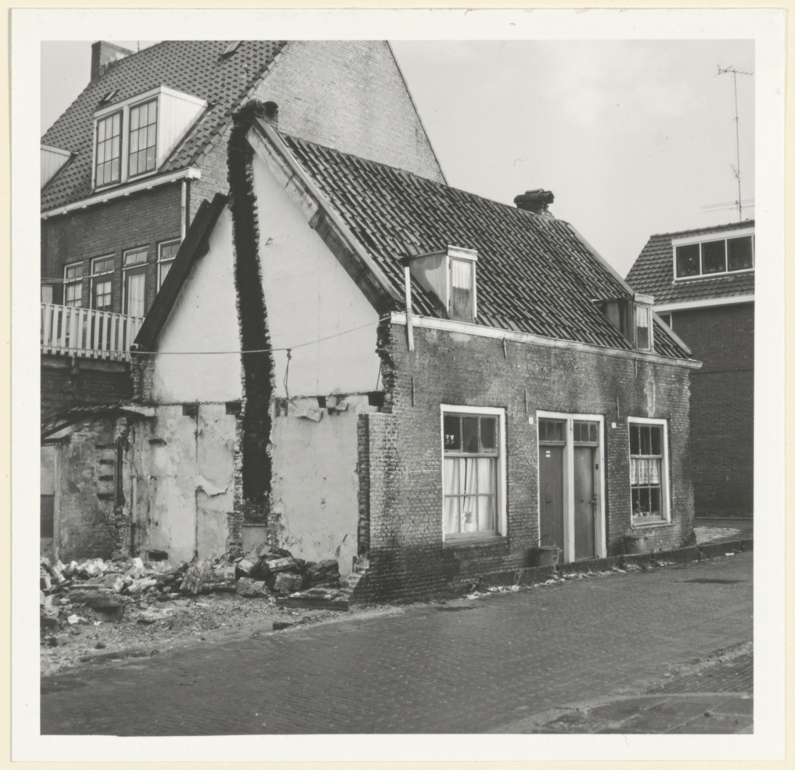 Afbraak van de twee laatste huisjes in de Lindenstraat, nabij de Kromme Elleboog.
