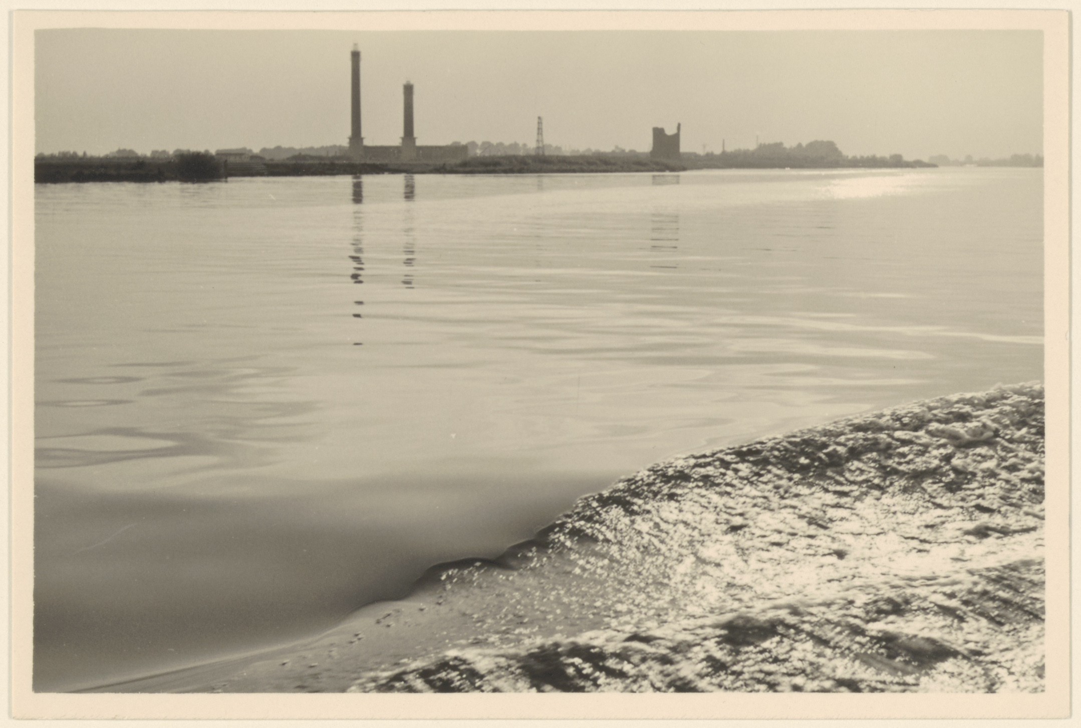 - De Merwede voor Papendrecht, gezien in zuidwestelijke richting. Op de achtergrond het Huis te Merwede en de . Centrale Merwedehaven in aanbouw.