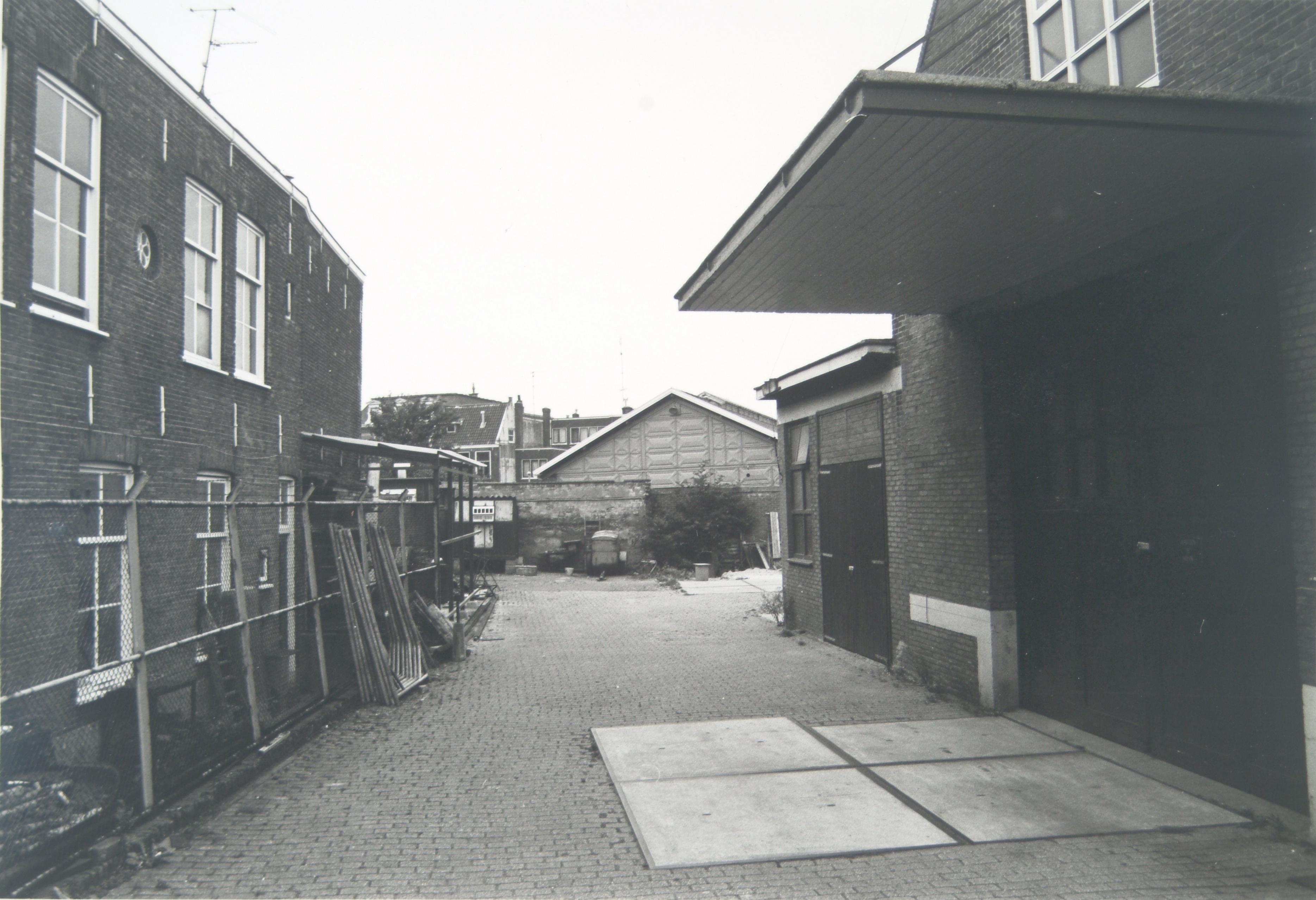Rechts was de opgang naar de dockeek fabriek achterkant. Links woonde de fam Stam. Rechts zit Smederij Van Haksteen.Bij de doorkijk stond vroeger een grote houten groene loods,met hele grote deuren En een puntdak.Daarvoor ben ik en de smederij opzoek naar een foto van die loods.Wie help mij?
