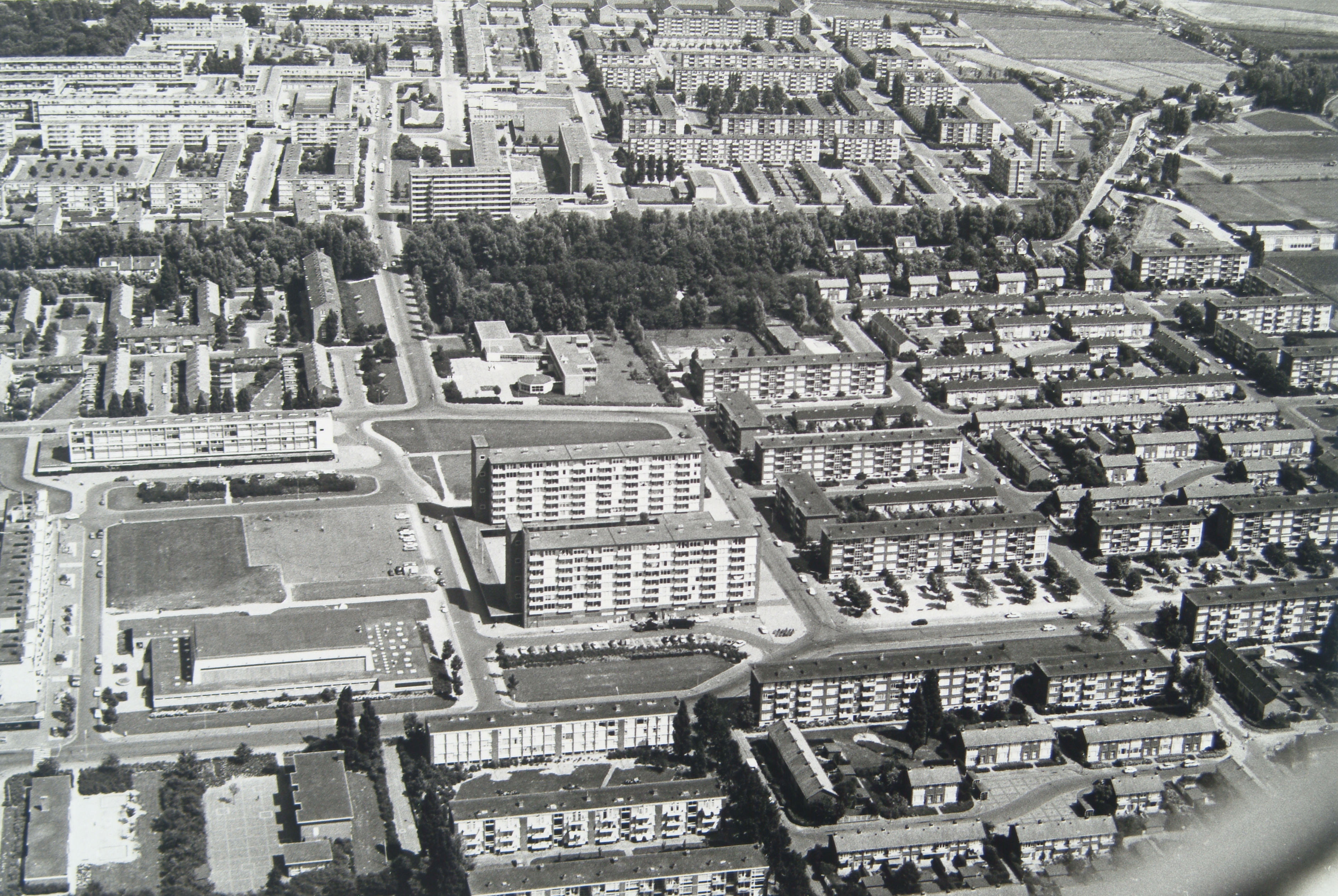 Luchtfoto van de wijken Wielwijk en Crabbehof Linksonder het Admiraalsplein …