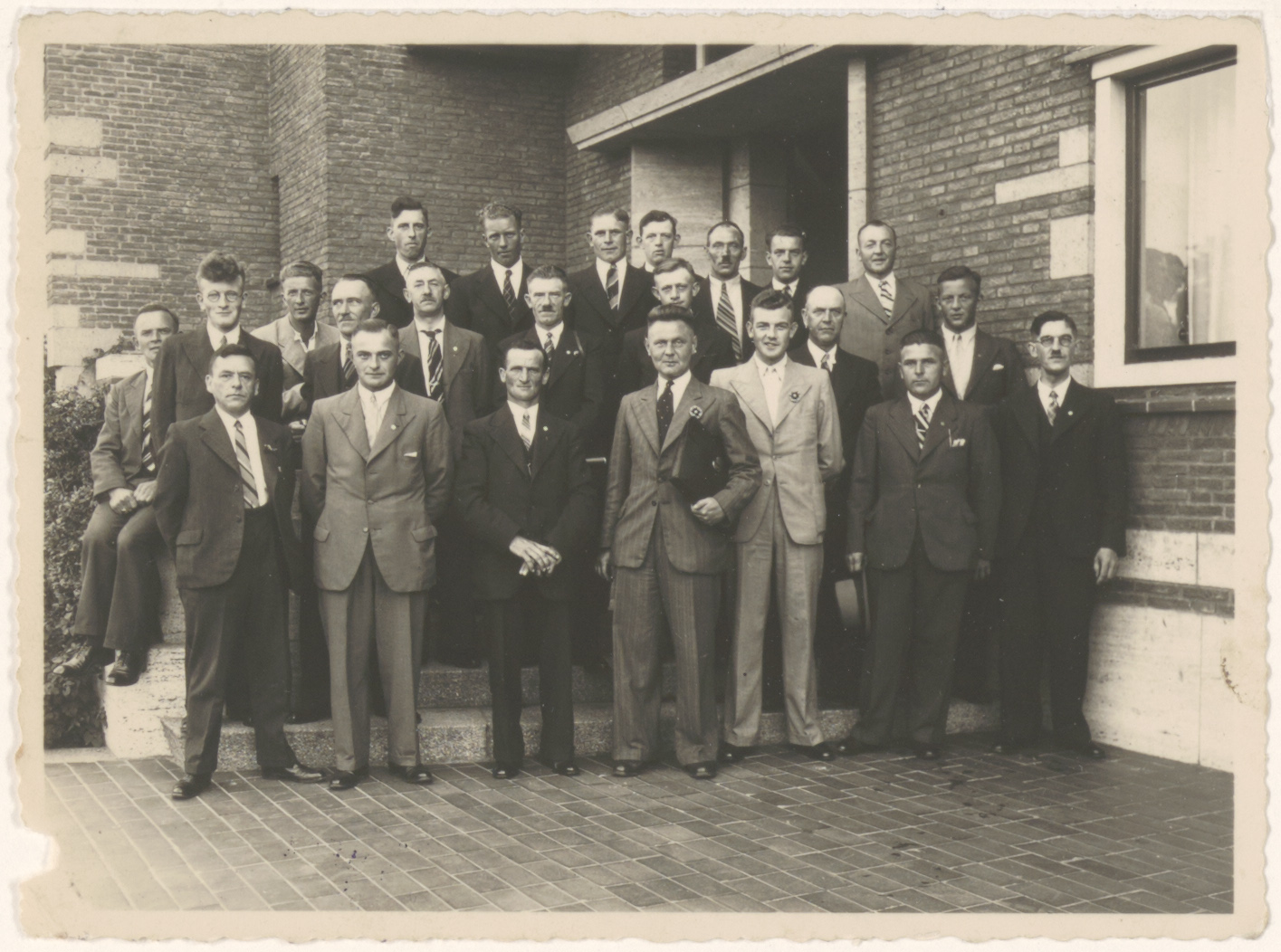 - Een Zwijndrechts mannenkoor op de stoep van het raadhuis; in het midden dirigent G. Groenhart.