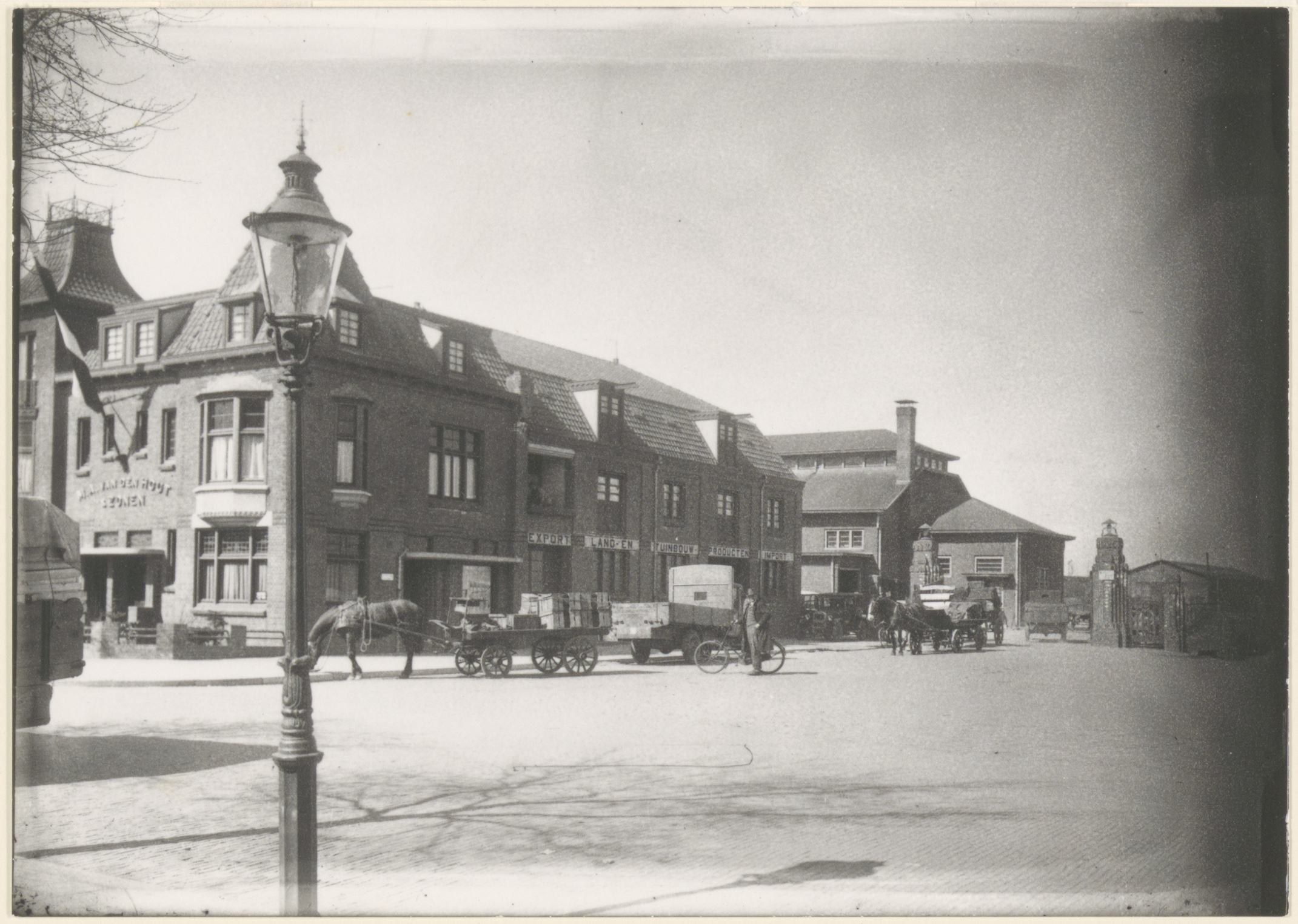 Op de voorgrond firma M.A. van den Hout & Zonen.