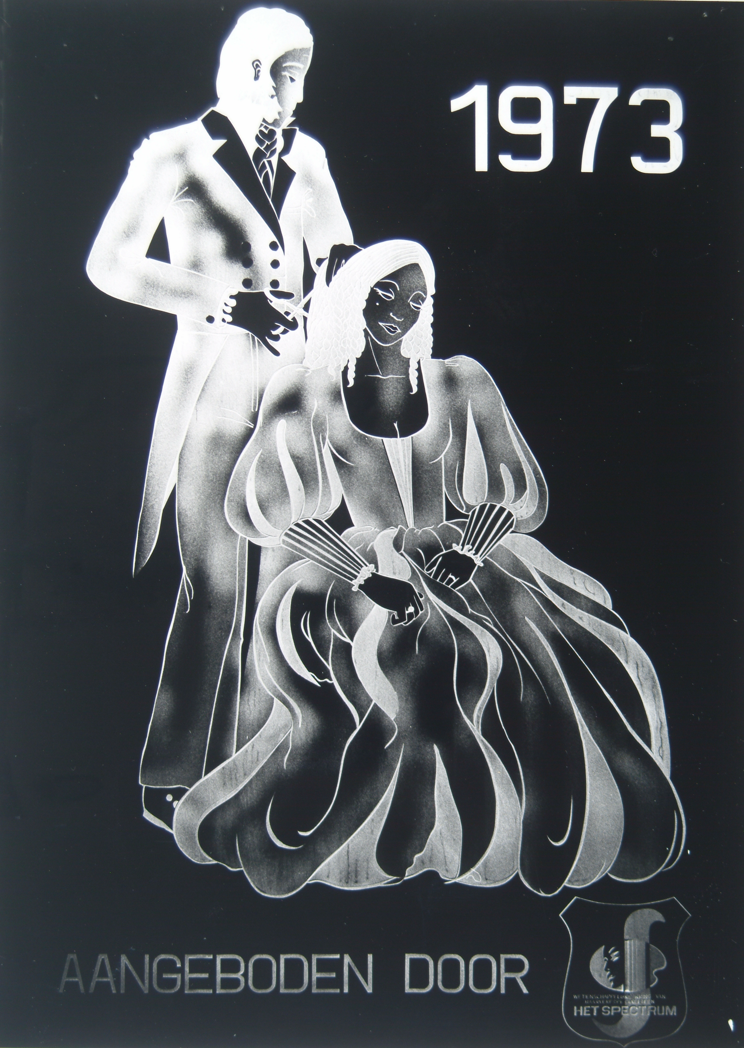 - Gezandstraald raam in de toegangshal van het voorlichtingscentrum van de firma Schwarzkopf aan de Rijksstraatweg