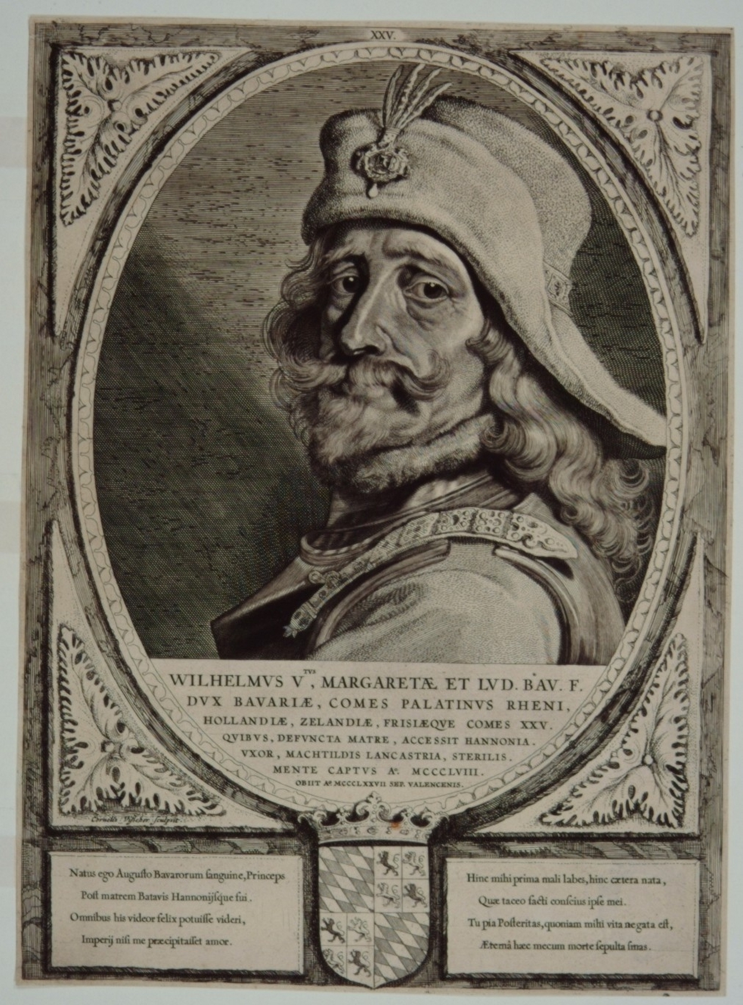 - Plaat 25 uit: Principes Hollandiae, Zelandiae et Frisiae, ab anno Christi DCCCLXIII & primo Comite Theodorico usque ad ultimum Philippum Hispaniarum Regem; aeri omnes incisi, ac fideliter descripti, auspicijs Petri Scriverii; Haarlem, P. Soutman, 1650; gravures door Cornelis Visscher. Serie van 40 bladen, elk hg. 40.5, br. 29.8 c., bevattende: Titelblad; het wapen van Haarlem hangende aan een palmboom en de portretten der graven van Holland en West-Friesland van Dirk I-Philips III (als Koning van Spanje IV), gemerkt I-XXXVI alsmede ongenummerd Philips IV en Philips V. De portretten zijn in ovaal, waaronder een wapen en twee 4-regelige verzen (Muller Catalogus van portretten 1; Van Someren 96).