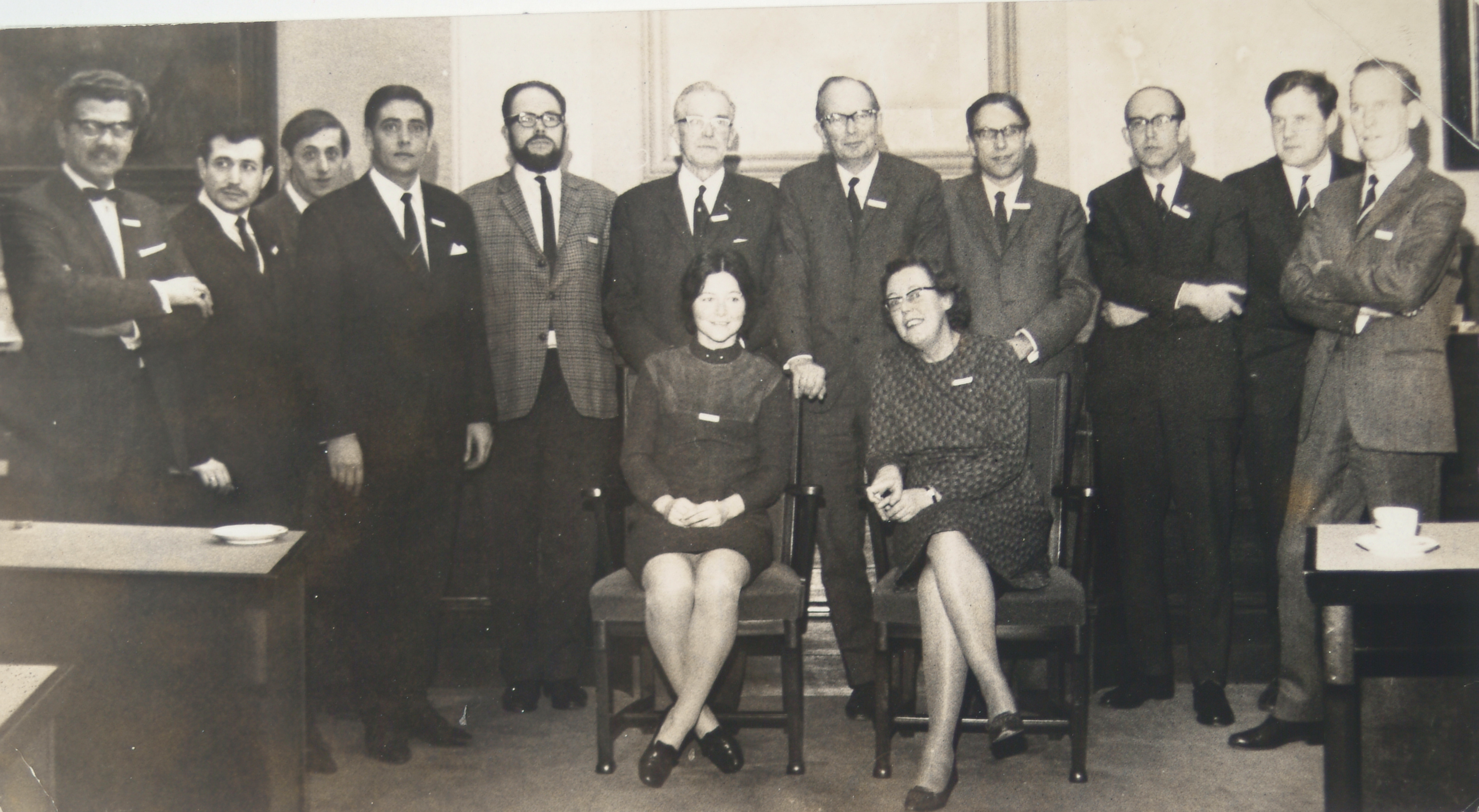 Groepsportret 1970 van de CR v.l.n.r. Aad Vos, musicus. Wim den Boef, N.L.P. (Nico) Lamers, C.(Kees de Groen), G. (Gerard Gerritsen) P.C.E Sprangers ? A. van der Sluijs, C.(Kees) Buddingh’, A.H. Hoogendijk, J. (Jan Dicke) G. (Gé Sonnemans) Zittend: Lenie Schaap.? Of W.Bleeker-van Lingen? G.(Gemma) Mentzel-van Aken