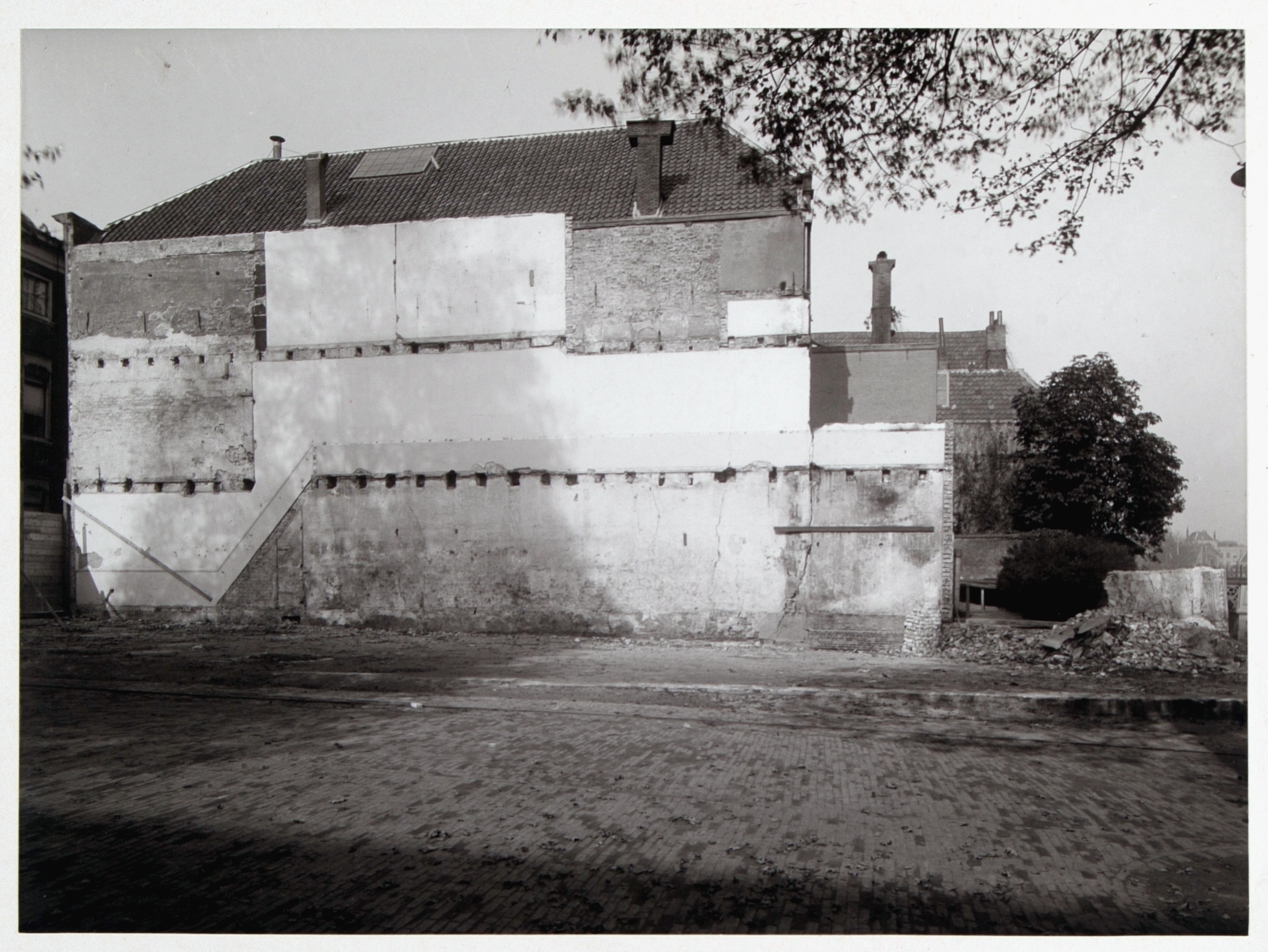 Gesloopt huis aan de oostzijde Wijnstraat ter verruiming van de groenteveiling op de …
