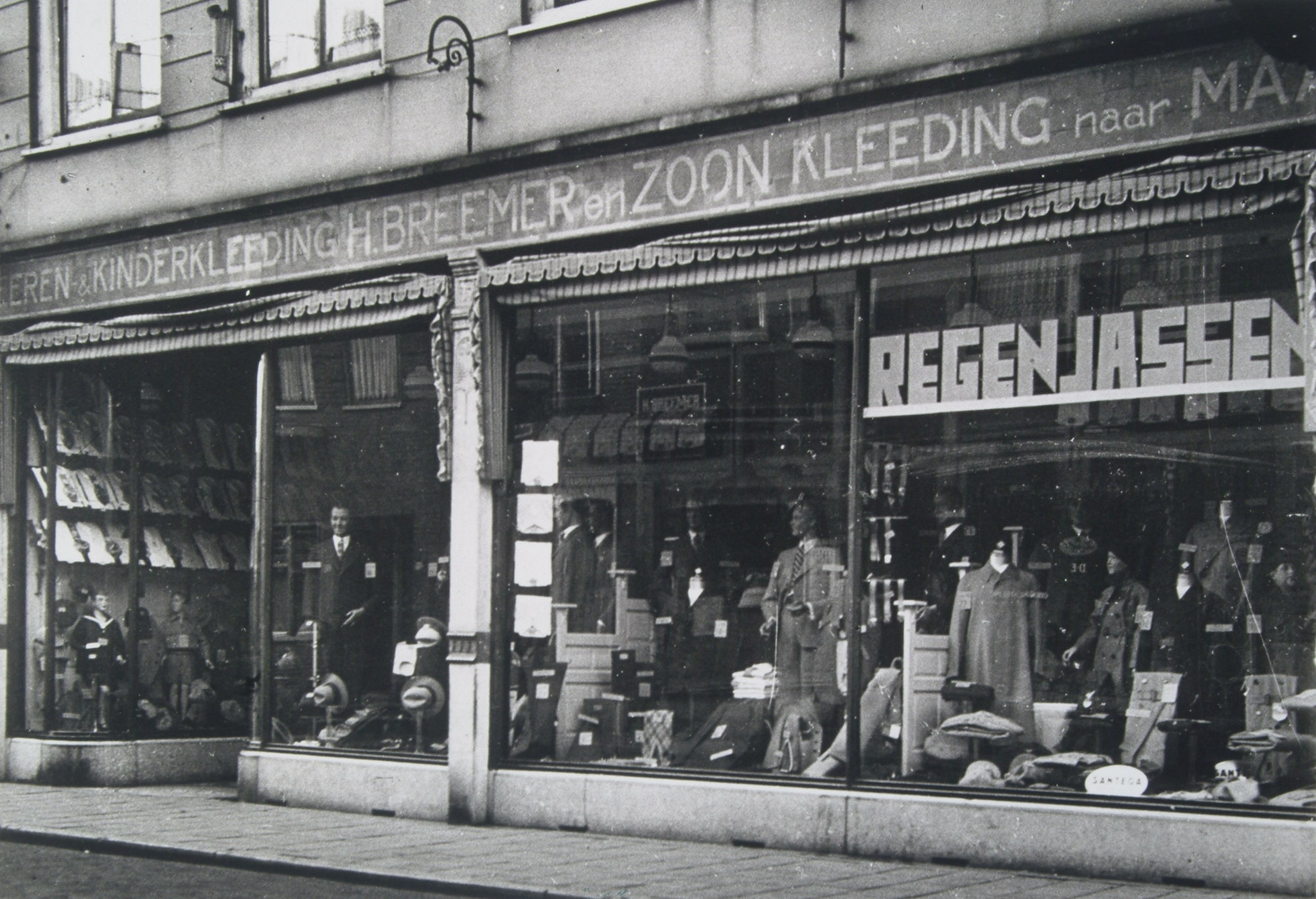- Etalage van heren- en kinderkledingwinkel H. Breemer en Zoon aan de Voorstraat