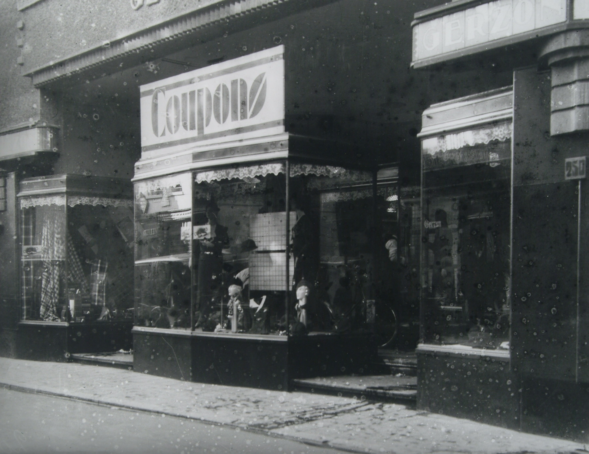 - Etalage van kledingmagazijn Gerzon aan de Voorstraat 248