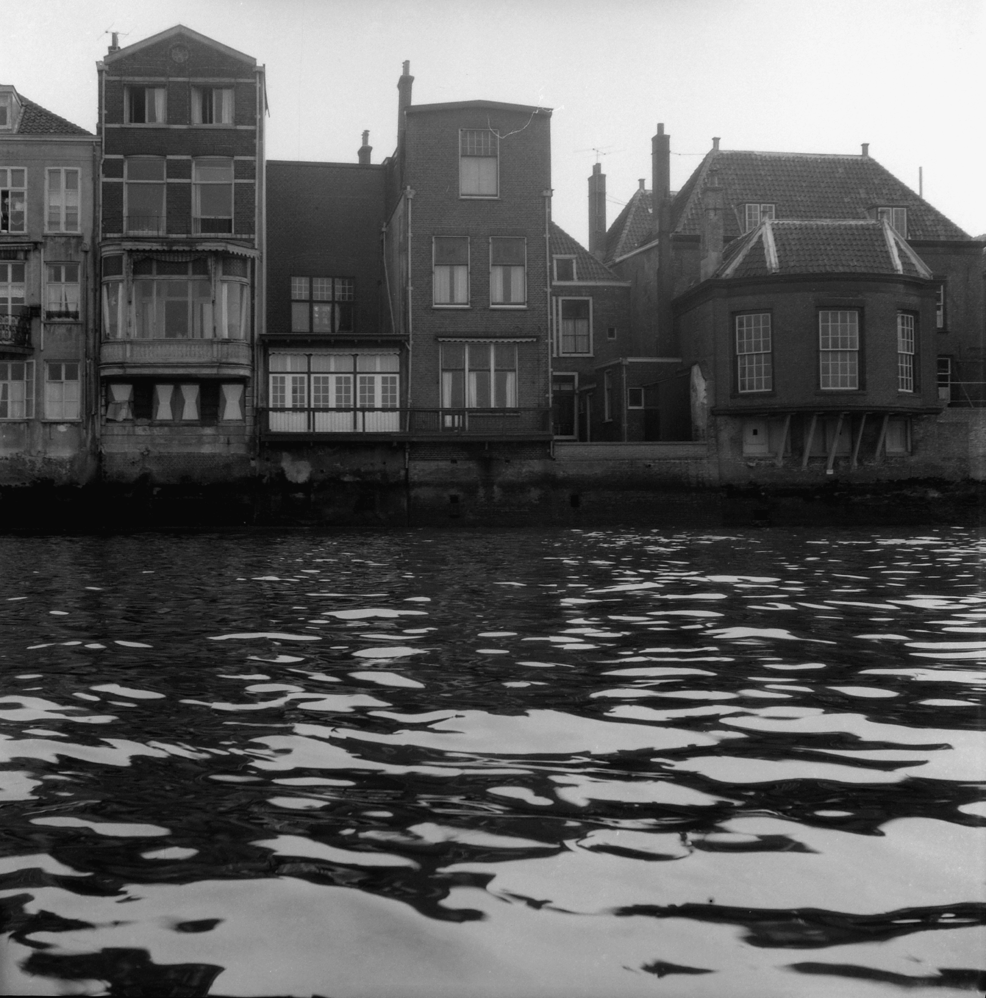 Achterkant huizen aan de Wolwevershaven vanaf de Oude Maas