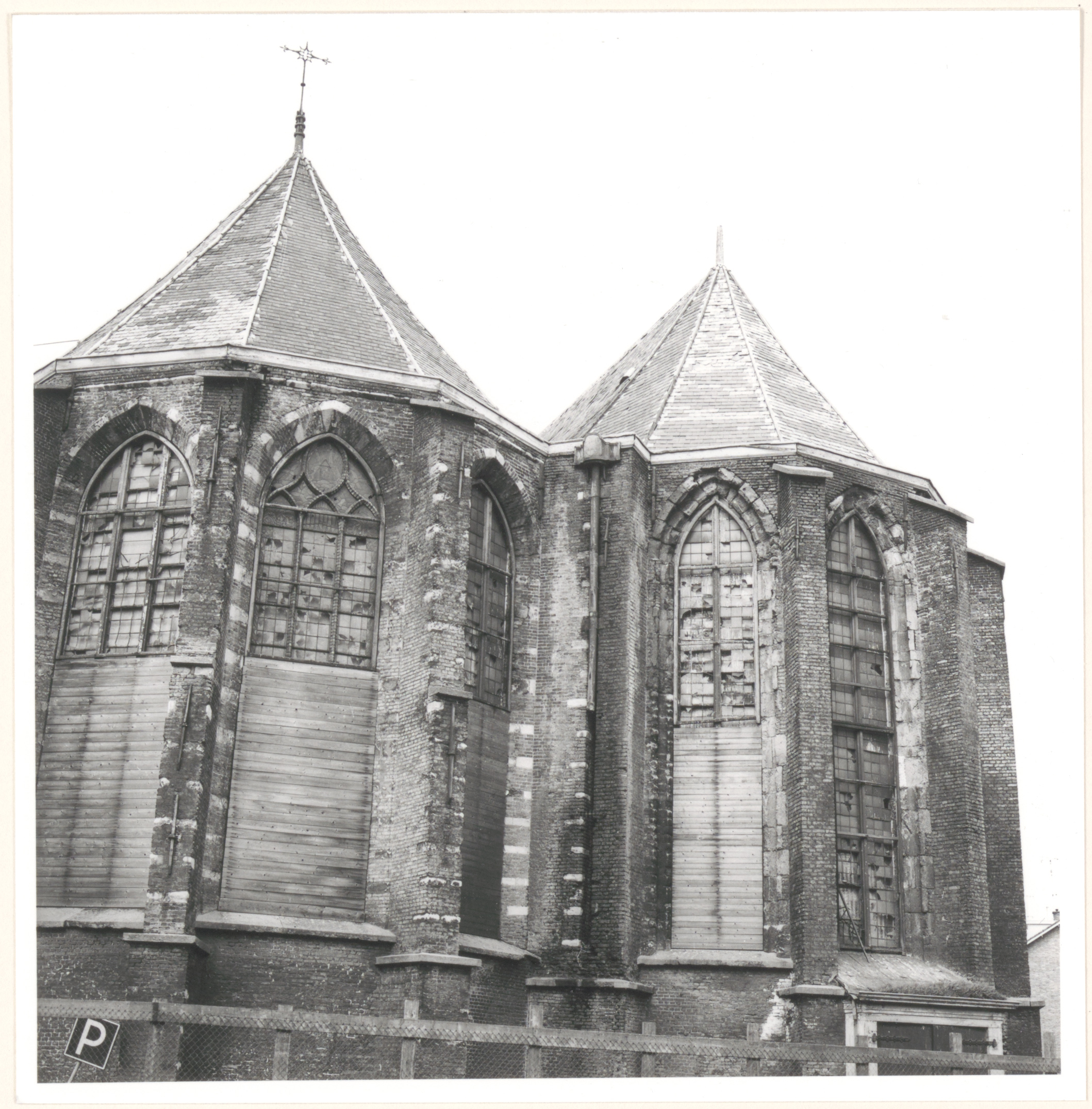 Oostzijde van de Nieuwkerk op het Nieuwkerksplein in vervallen staat.