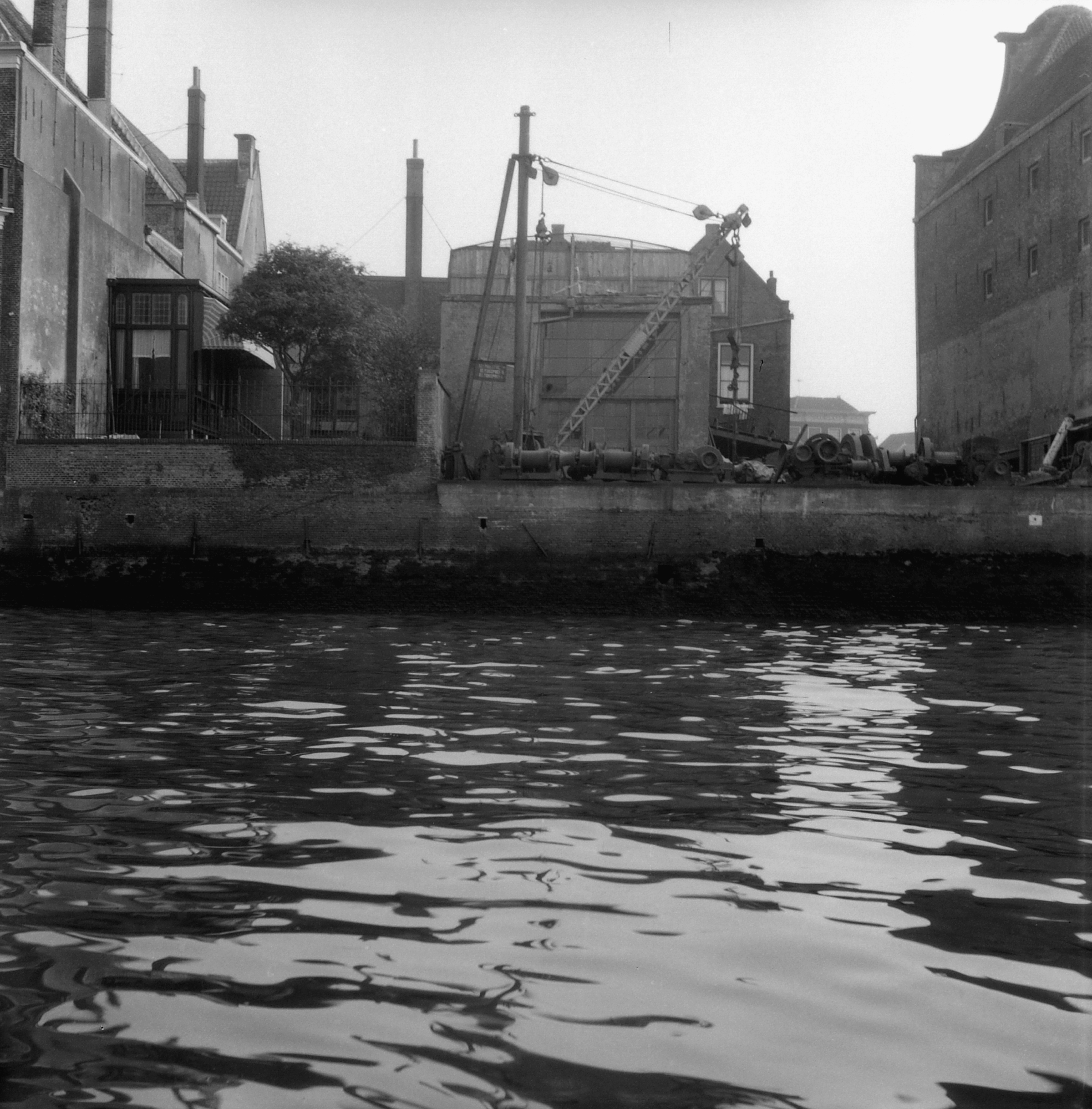 Achterkant huizen aan de Wolwevershaven vanaf de Oude Maas