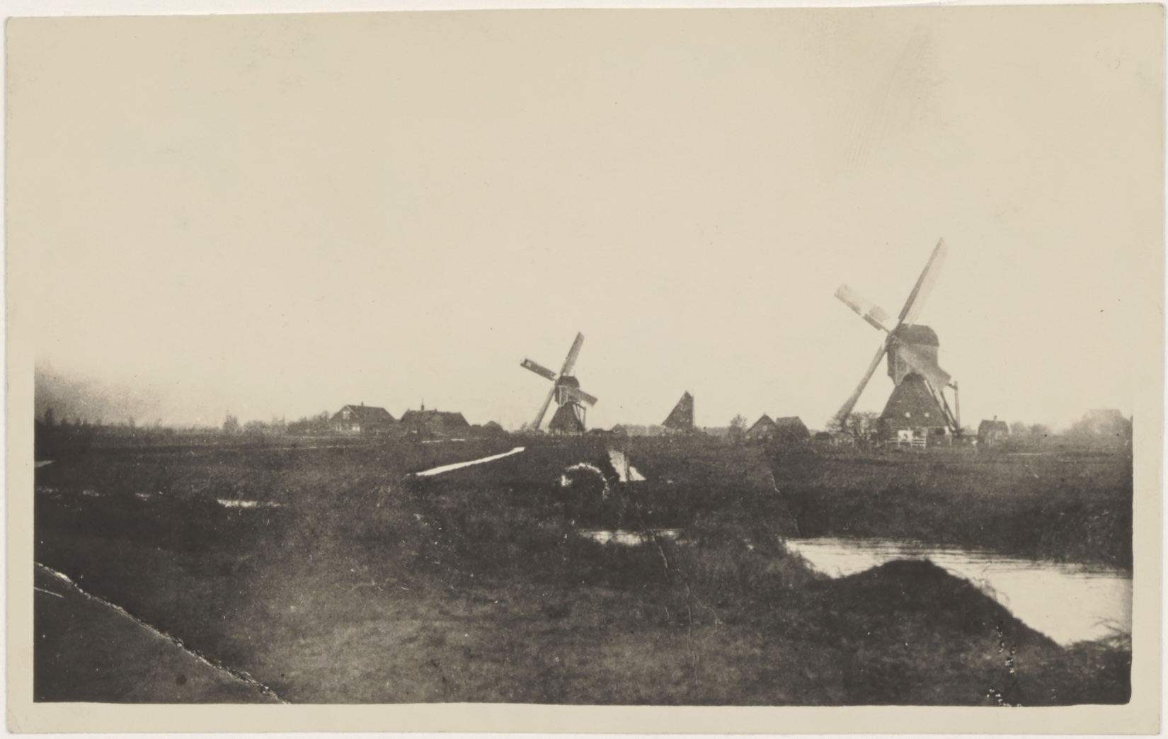 Twee malende molens tussen Bleskensgraaf en Oud-Alblas.