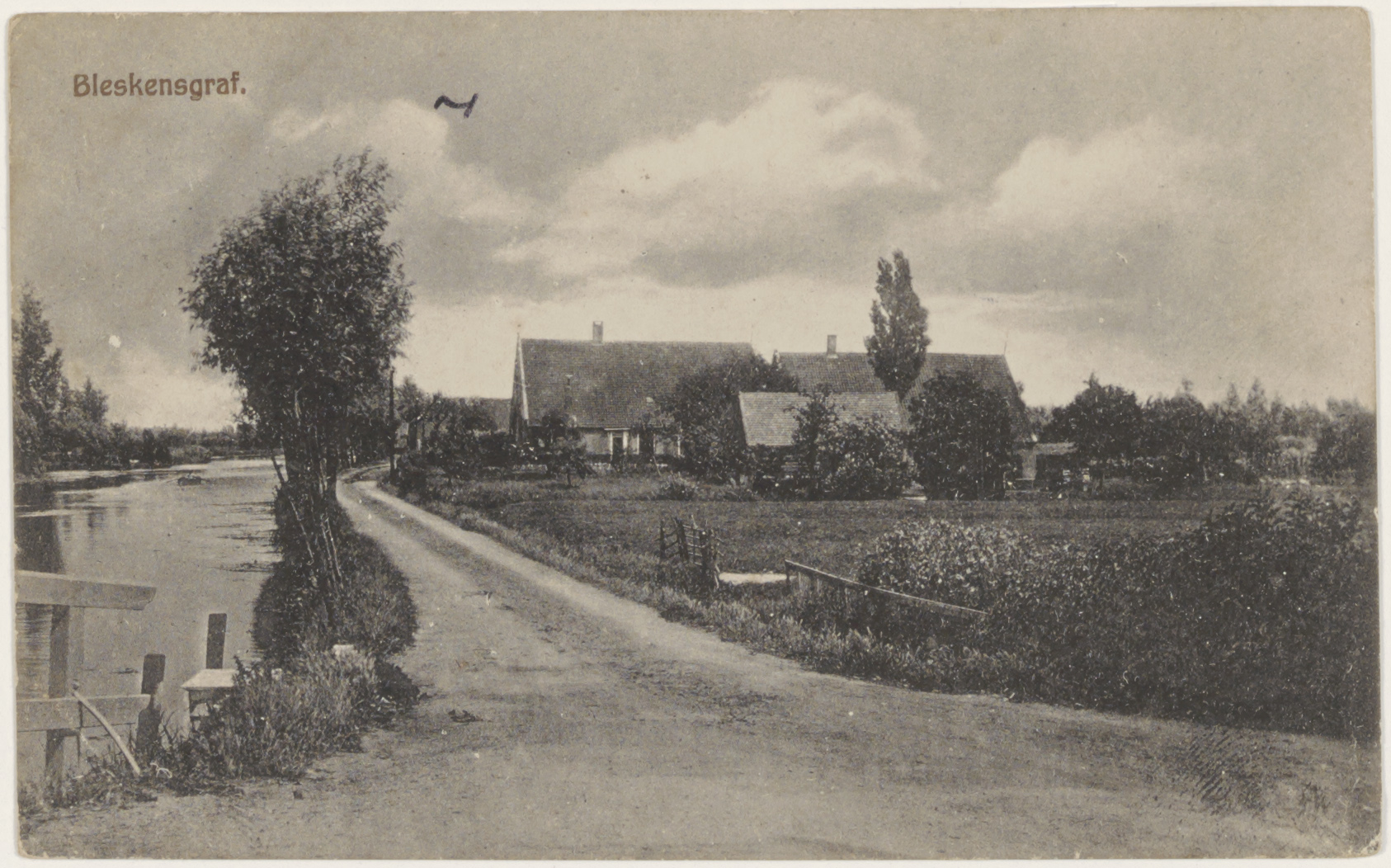 - Omstreeks 1915 was de zuidzijde van de Graafstroom ter hoogte van het dorp nog nauwelijks bebouwd. Er stonden enkele boerderijen en verder was alles weiland. De dorpsbebouwing bevond zich nagenoeg geheel aan de noordzijde van het water. Dat is overigens ook nu nog min of meer het geval. Op de achtergrond de boerderij van de familie De Gier. Uiterst links is nog juist het uiteinde van de brugleuning zichtbaar.