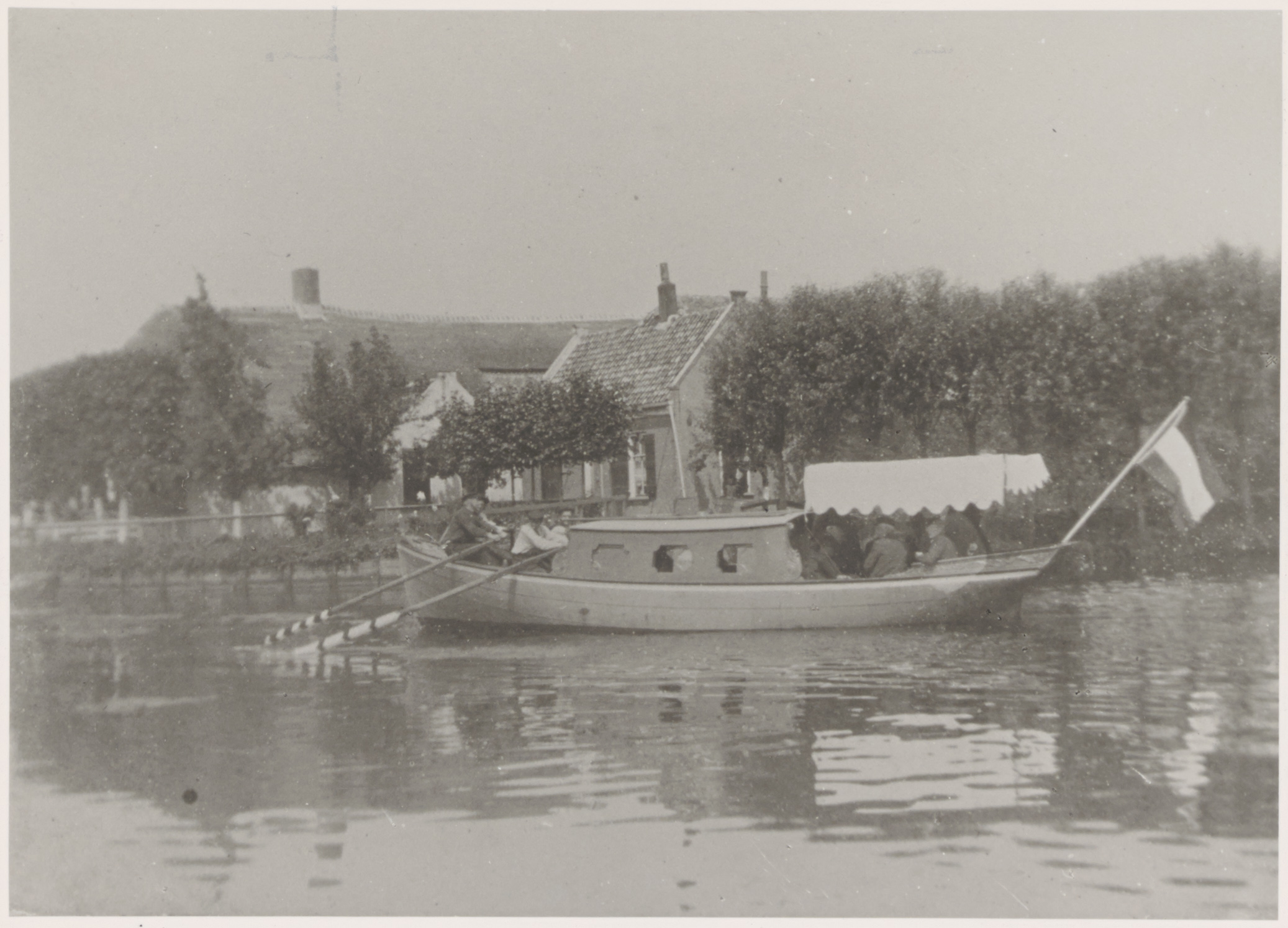 - Boot van waterschap De Nederwaard op de Graafstroom in Bleskensgraaf. De roeiers waren daggelders, het bestuur zat acherin.