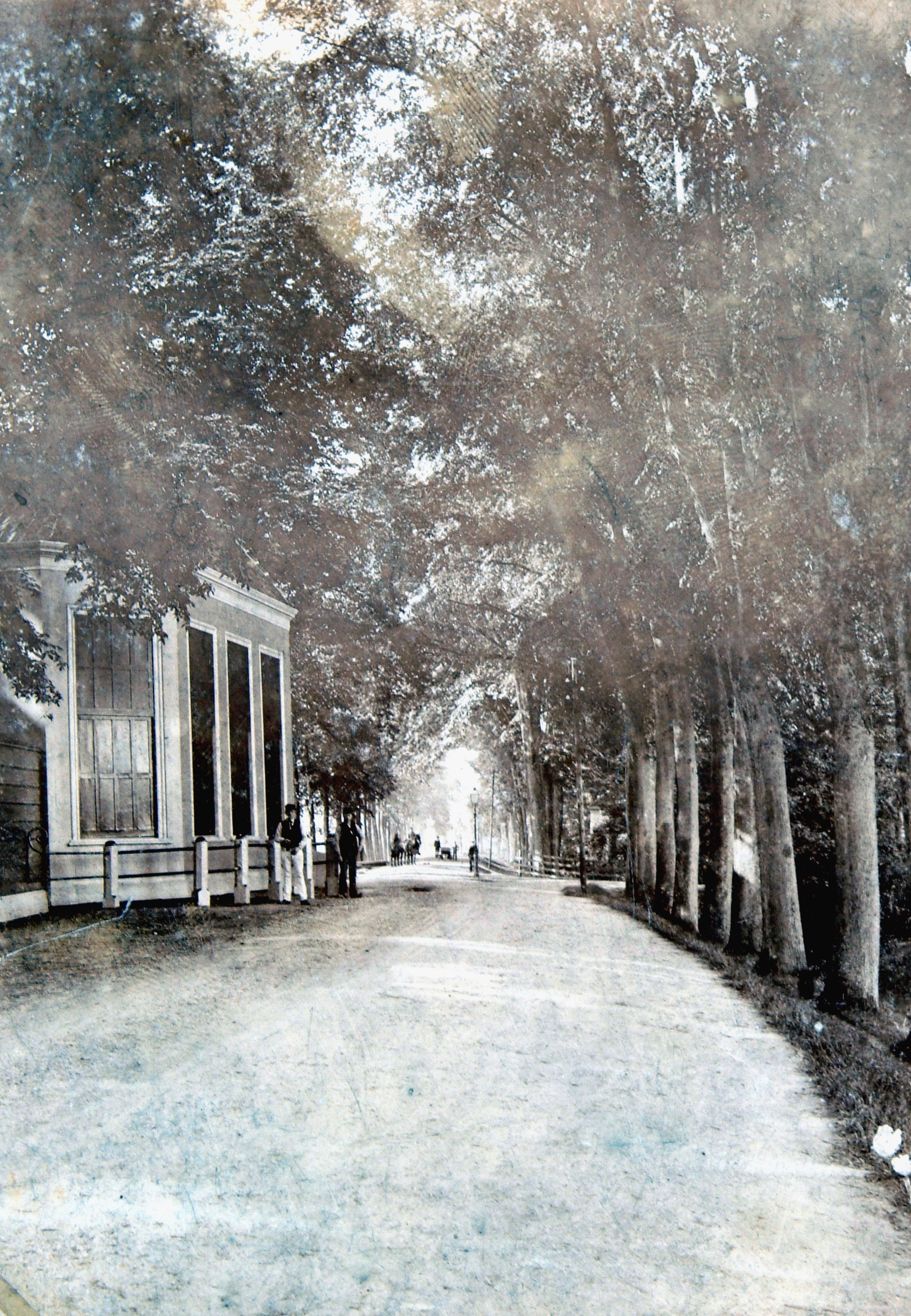 - Gezicht op de Groenedijk in de richting van de Vrieseweg. Links de koepel van villa Noordhove, aan de rechterkant de toegang naar de Hallincqlaan