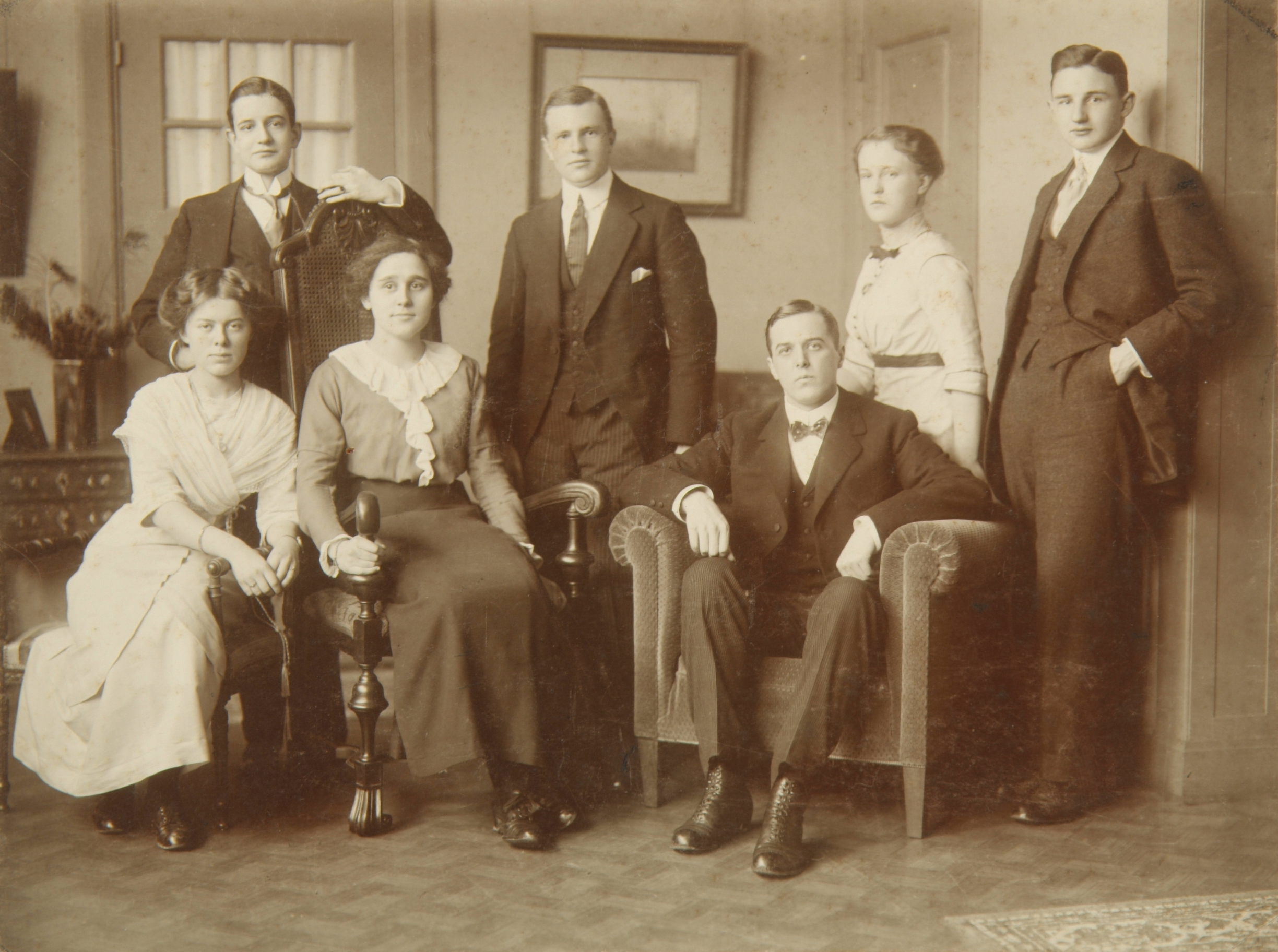 - Groepsportret van eindexamenklas 1913 van het Gymnasium. V.l.n.r. J.M. van den Brink, S.M. van Brakel, J.P. Luyt, D. van Seventer, J. Kerkhoven, G. Bosman en G.M. Kramer.