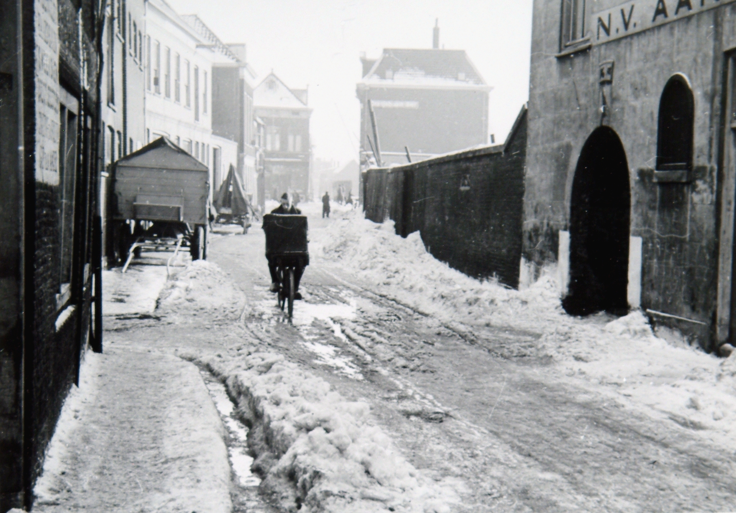 De Boogjes in de sneeuw, gezien in de richting van de Spuidam. Rechts de Botgenspoort,