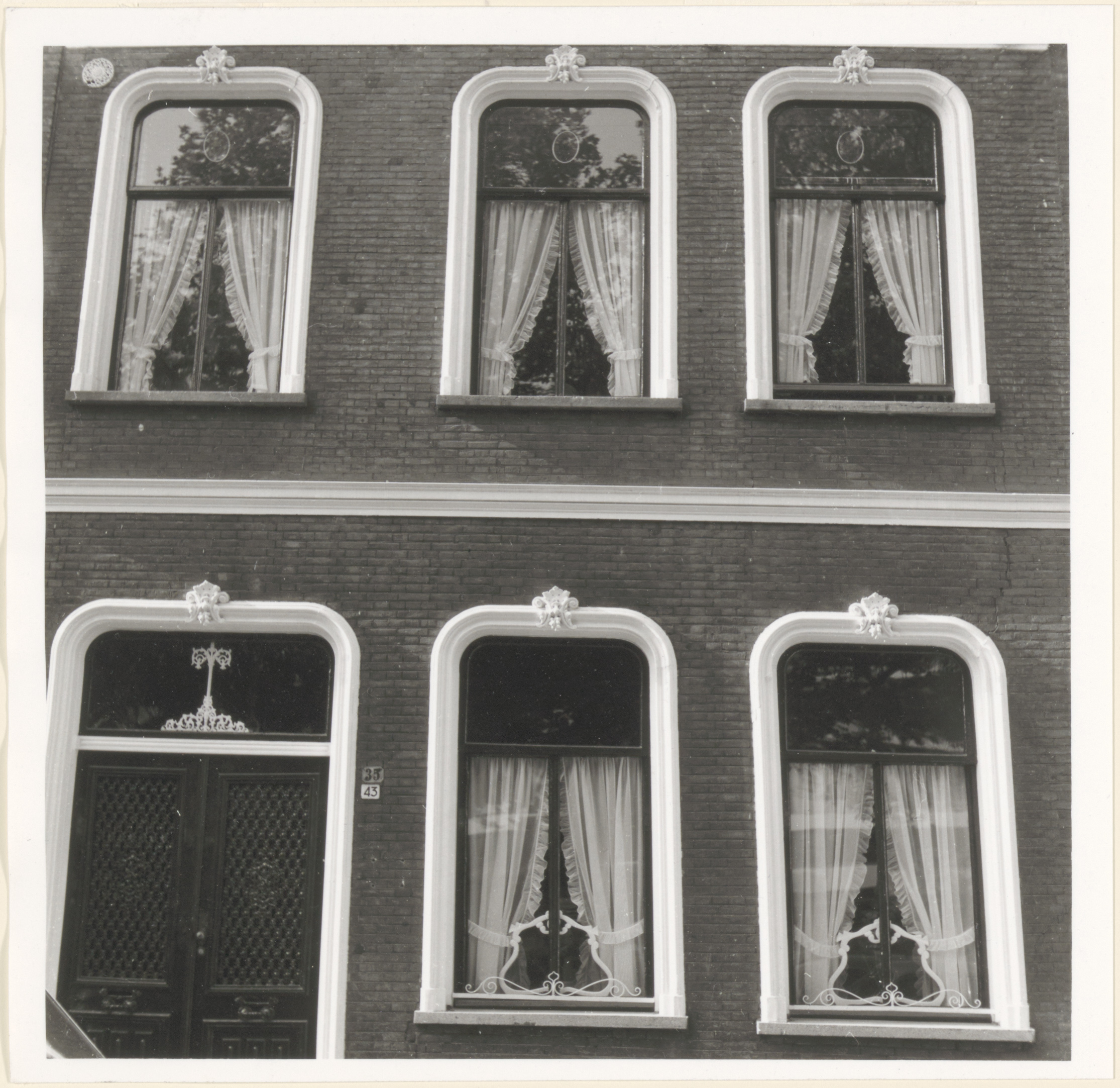 Deel van de gevel van het huis Johan de Wittstraat 43, gelegen aan de westzijde tussen de Oudenhovenstraat en de Matthijs Balenstraat.