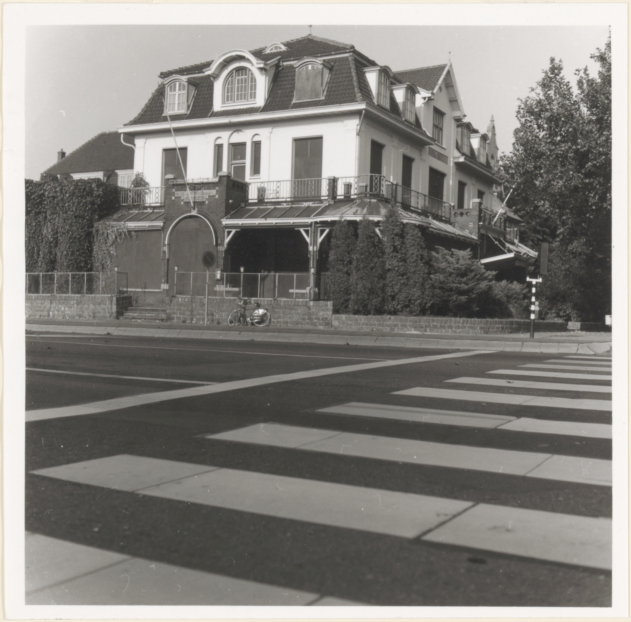 - Het dichtgetimmerde hotel/café/restaurant Ponsen op de hoek van de Burgemeester de Raadtsingel en de Stationsweg (rechts).