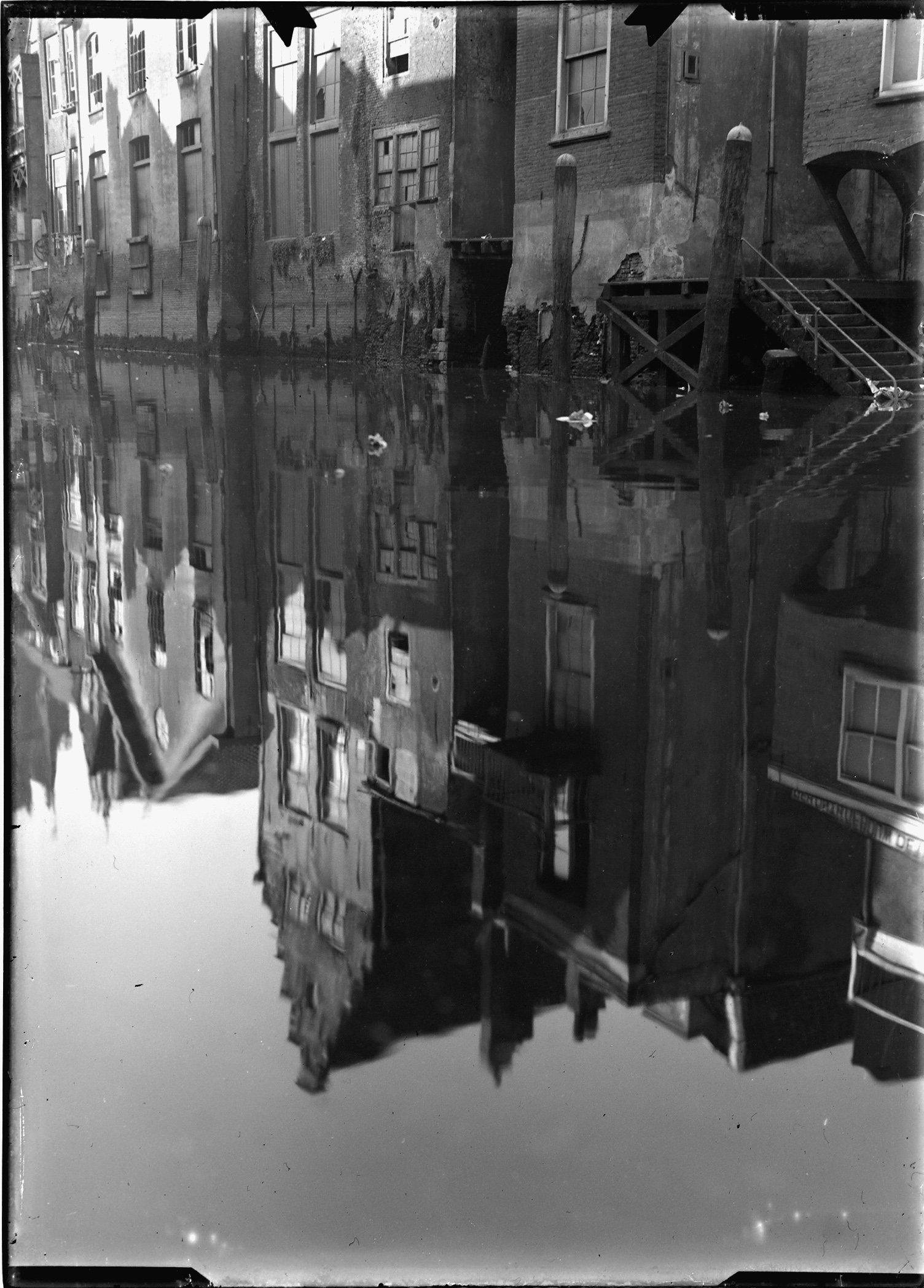 - Voorstraatshaven vanaf de Botgensteiger. Achterkant huizen aan de Grotekerksbuurt, rechts de Manhuissteiger.