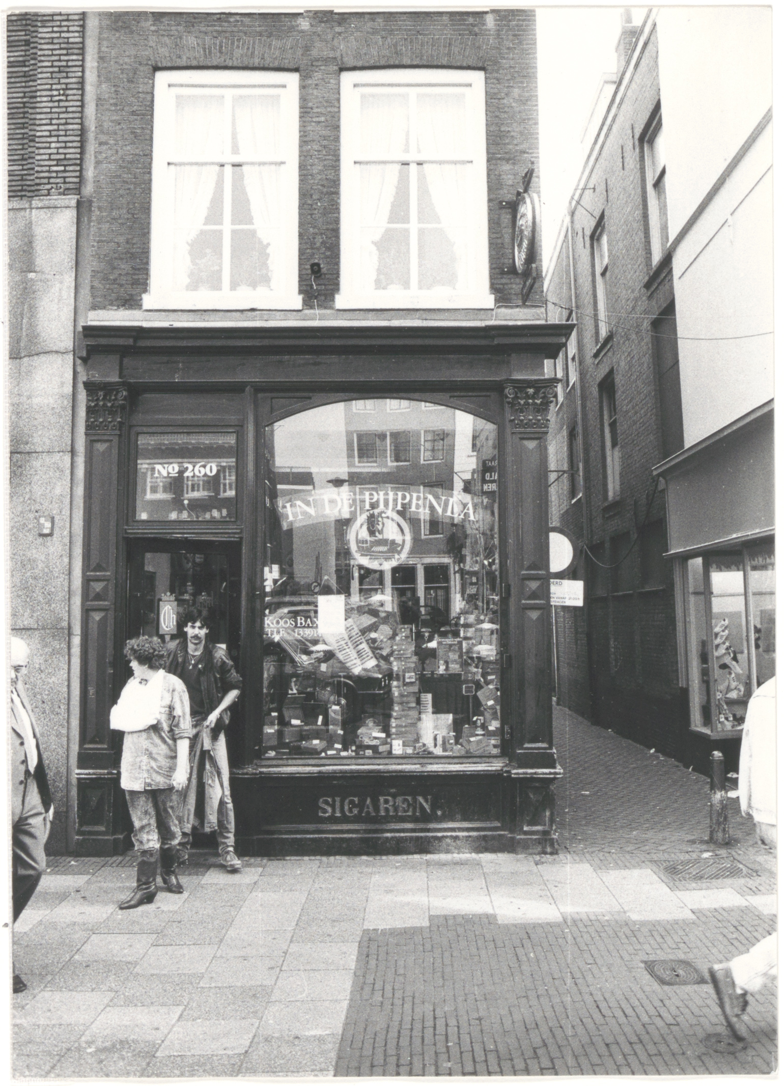 Sigarenwinkel van Koos Bax op de oostelijke hoek Voorstraat / Tolbrugstraat Landzijde, genummerd Voorstraat 260 (nr. in 1987).