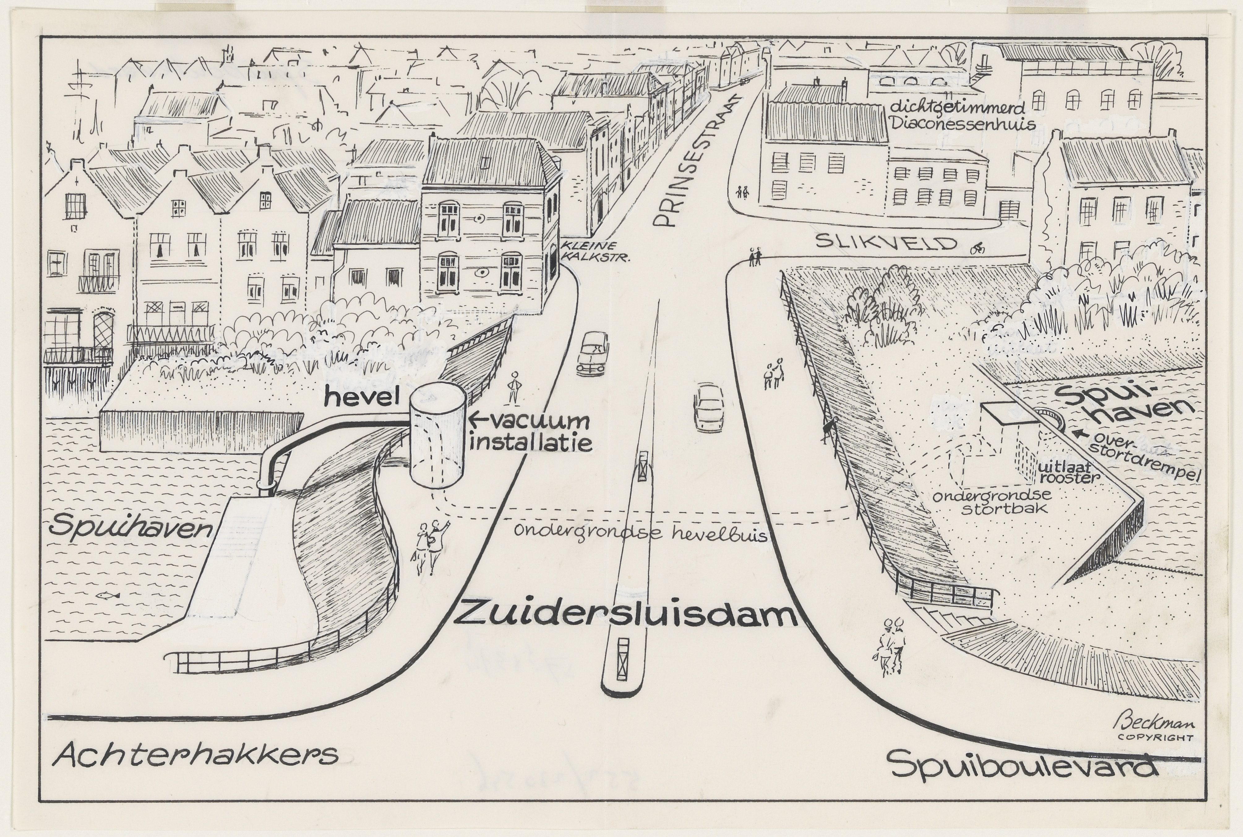 - Hevel als uitwateringssysteem van de Spuihaven bij de Zuidersluisdam.